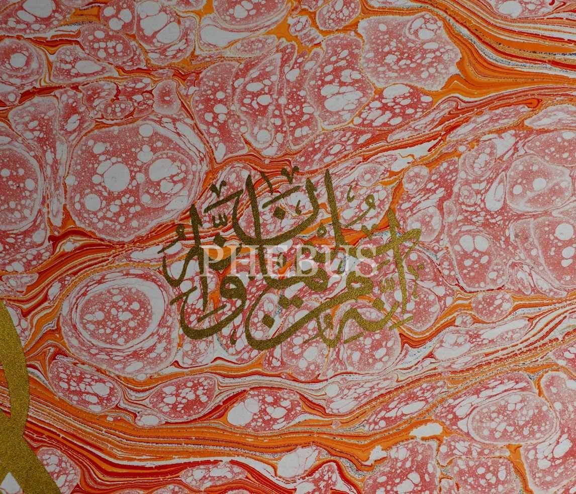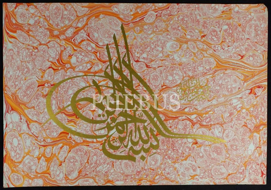 Ebru üzeri tuğra formunda besmele, 34x48 cm