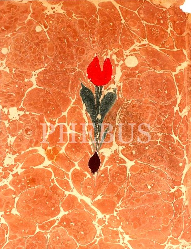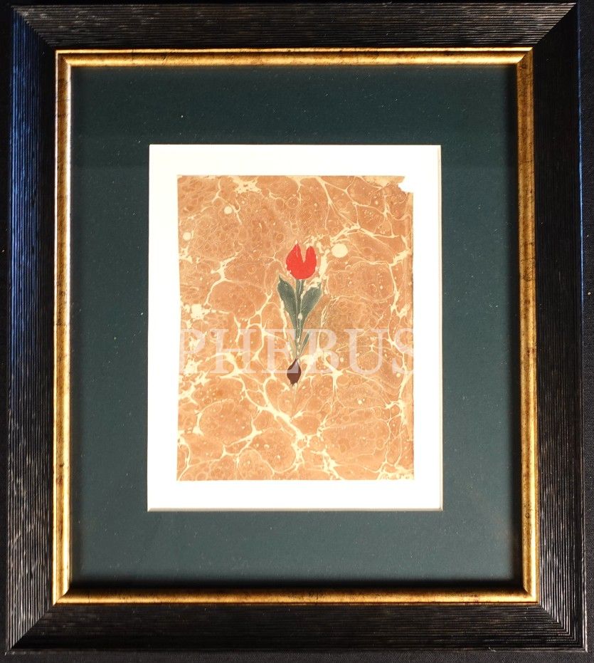 Necmeddin Okyay'a ait lale ebrusu, ebru: 11x17 cm, çerçeve: 31x35 cm