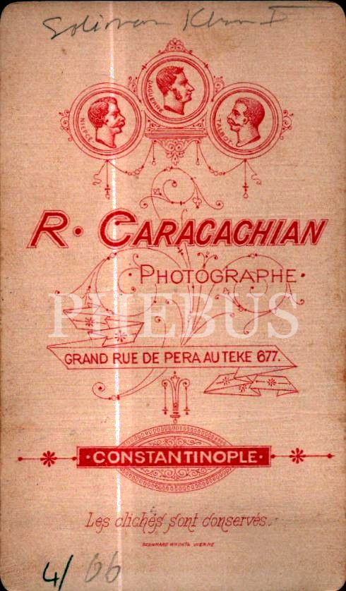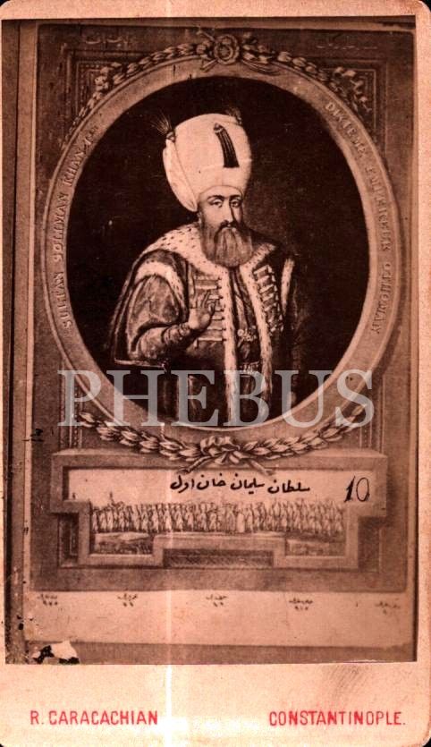 Ermeni Fotoğrafçı R. Caracachian´ın hazırladığı OSMANLI SULTANLARI serisinden "Sultan Süleyman Hân-ı Evvel", Constantinople, 7x10 cm