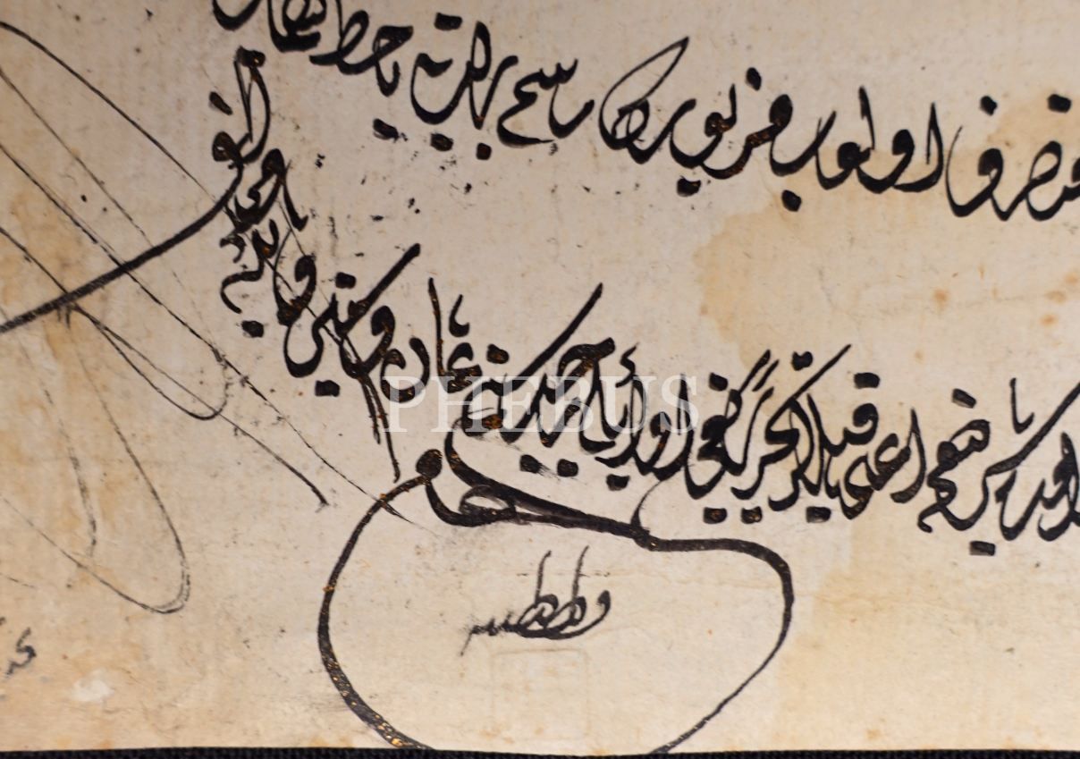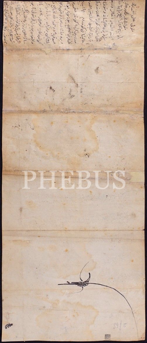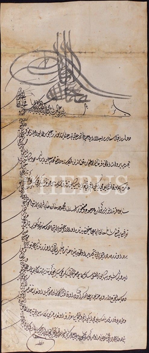 Çok nadir III. Osman el çekme tuğralı ve 1168 tarihli berat, 23x55 cm