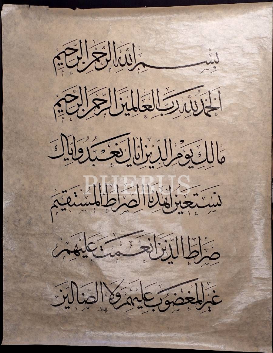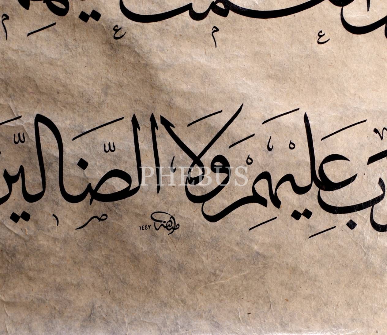 Emine (Uzun) ketebeli ve 1442 tarihli sülüs Fâtiha suresi, 61x72 cm