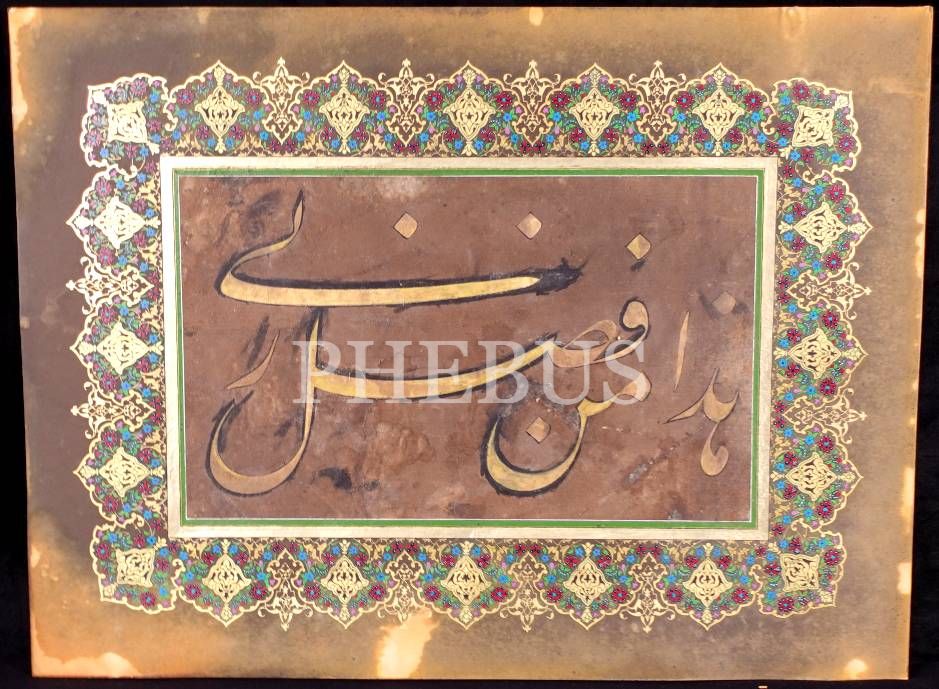 Eski dönem hoca işi zırnık mürekkep ile celî ta´lik "Hâzâ min fazl-i Rabbî", 43x60 cm