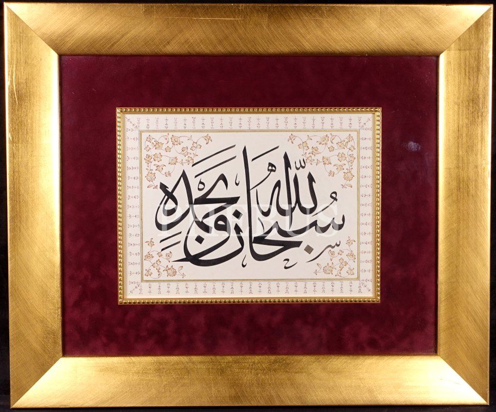 Celî sülüs "Sübhânallâhü ve bi-hamdih", yazı: 25x33 cm, çerçeve: 49x60 cm