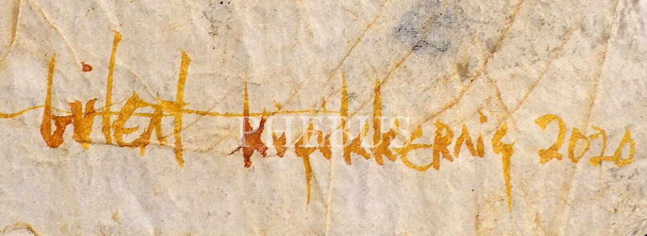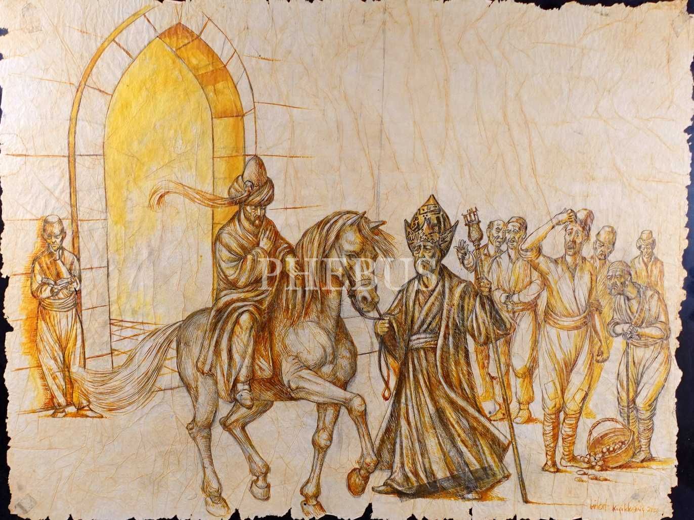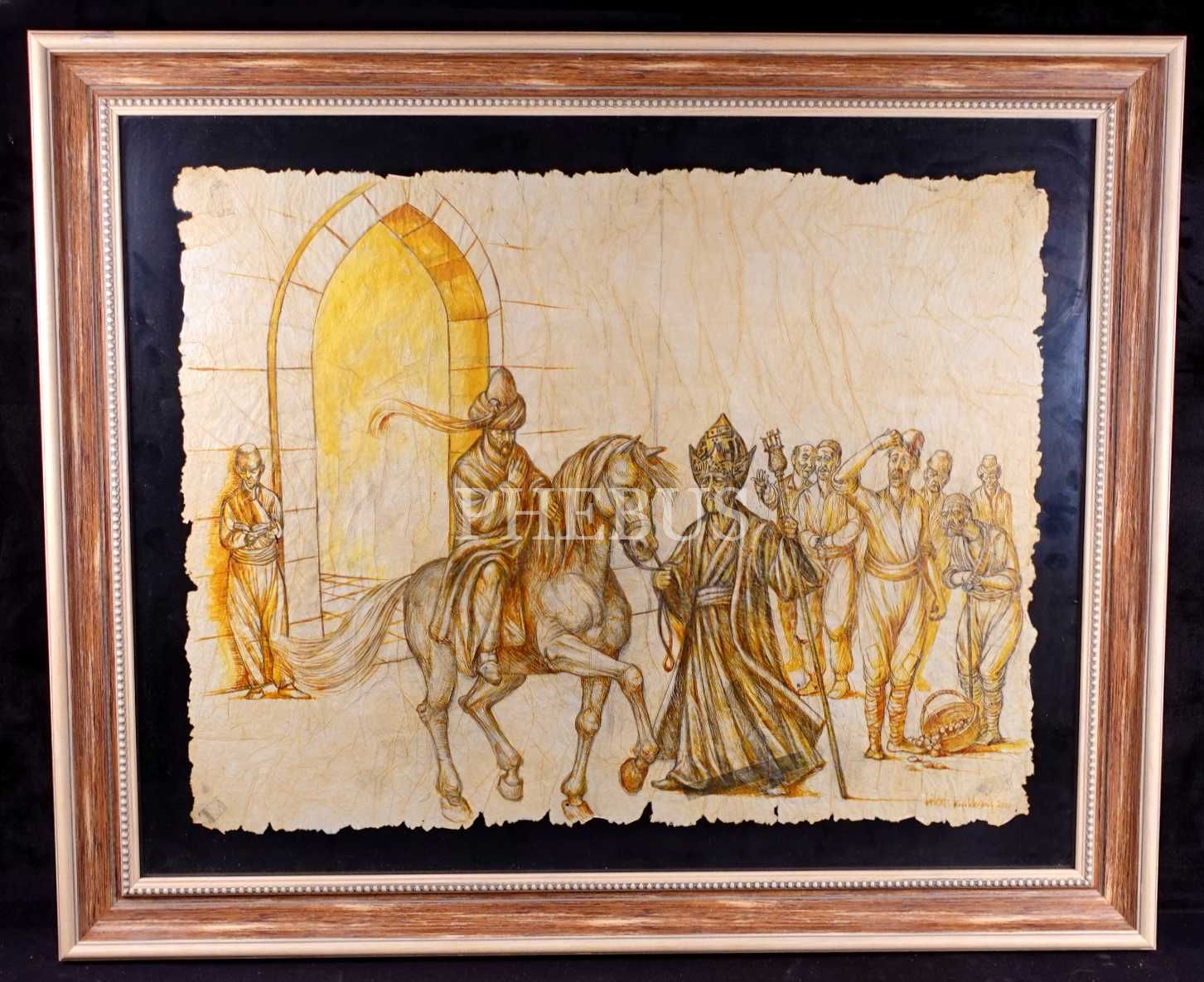 Bülent Küçükkerniç imzalı, Merece'l-Bahreyn konulu karakalem çizim, 65x76 cm