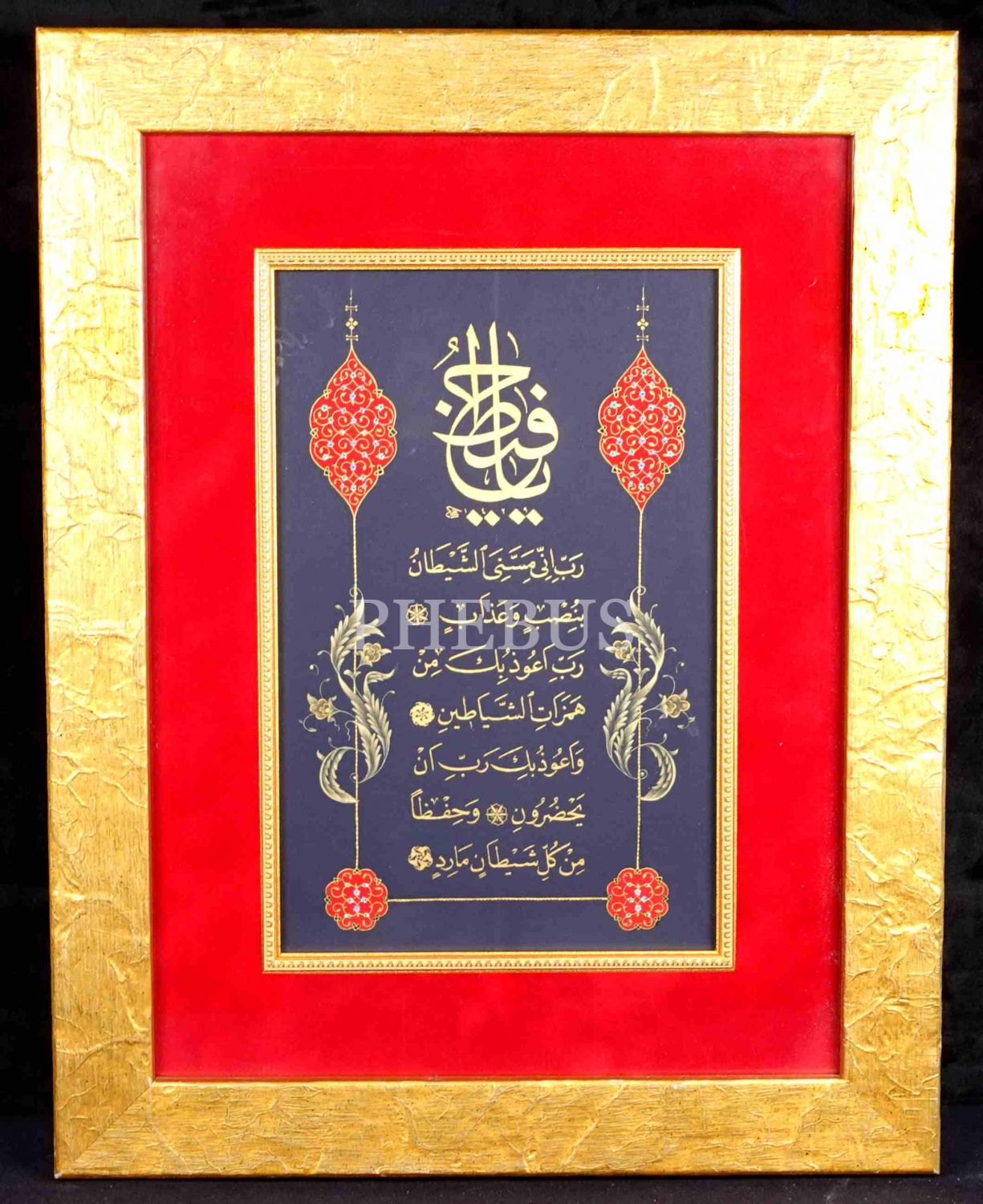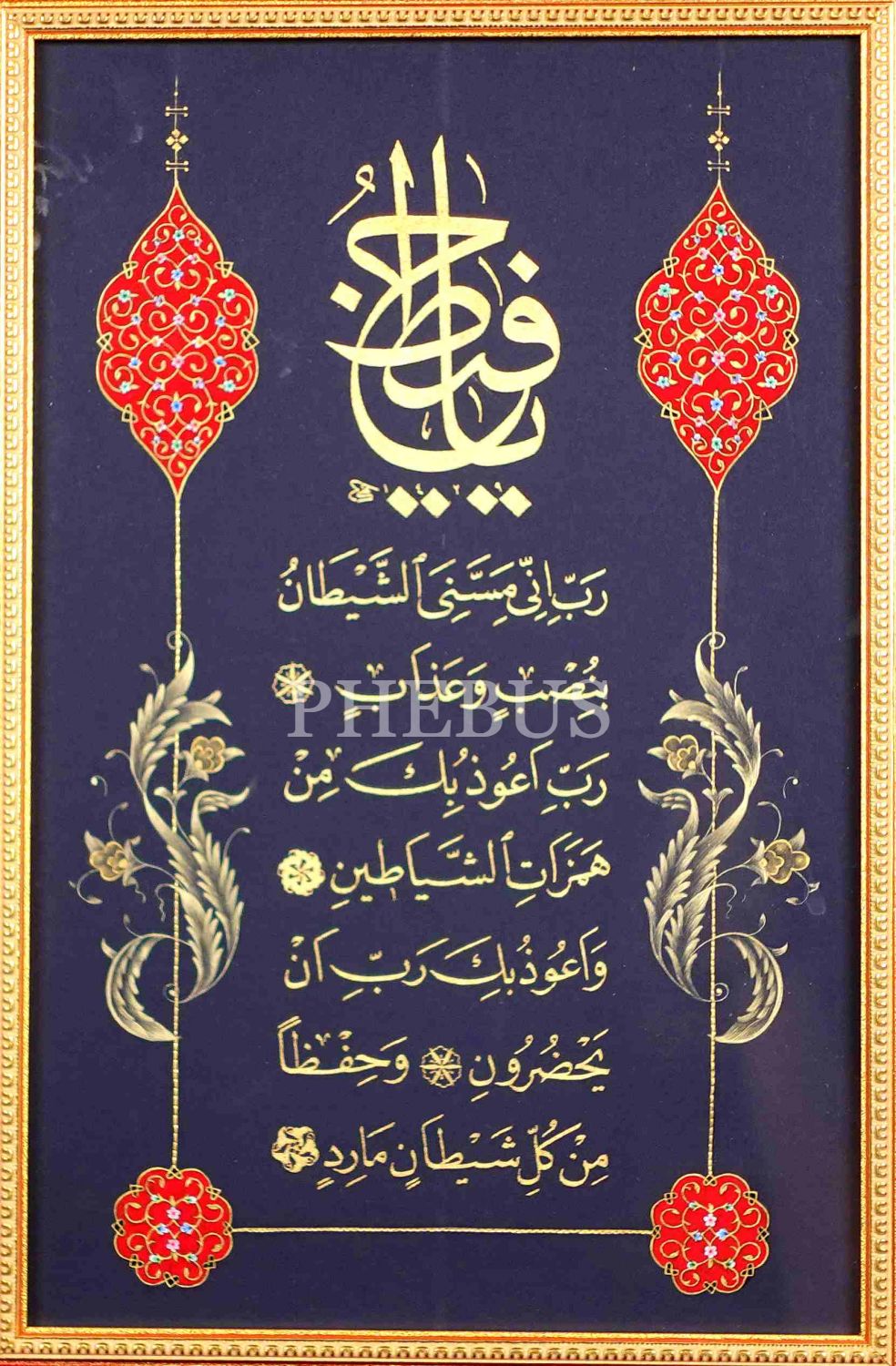 Ali Hüsrevoğlu ketebeli zerendûd "Yâ Hafîz" ve hıfz ayetleri istifi, tezhip: Y. Çubukoğlu, yazı: 18x28 cm, çerçeve: 37x47 cm