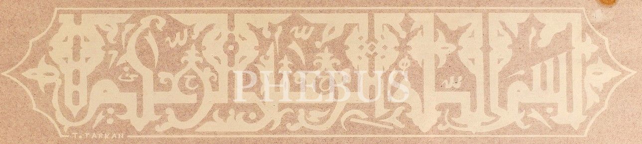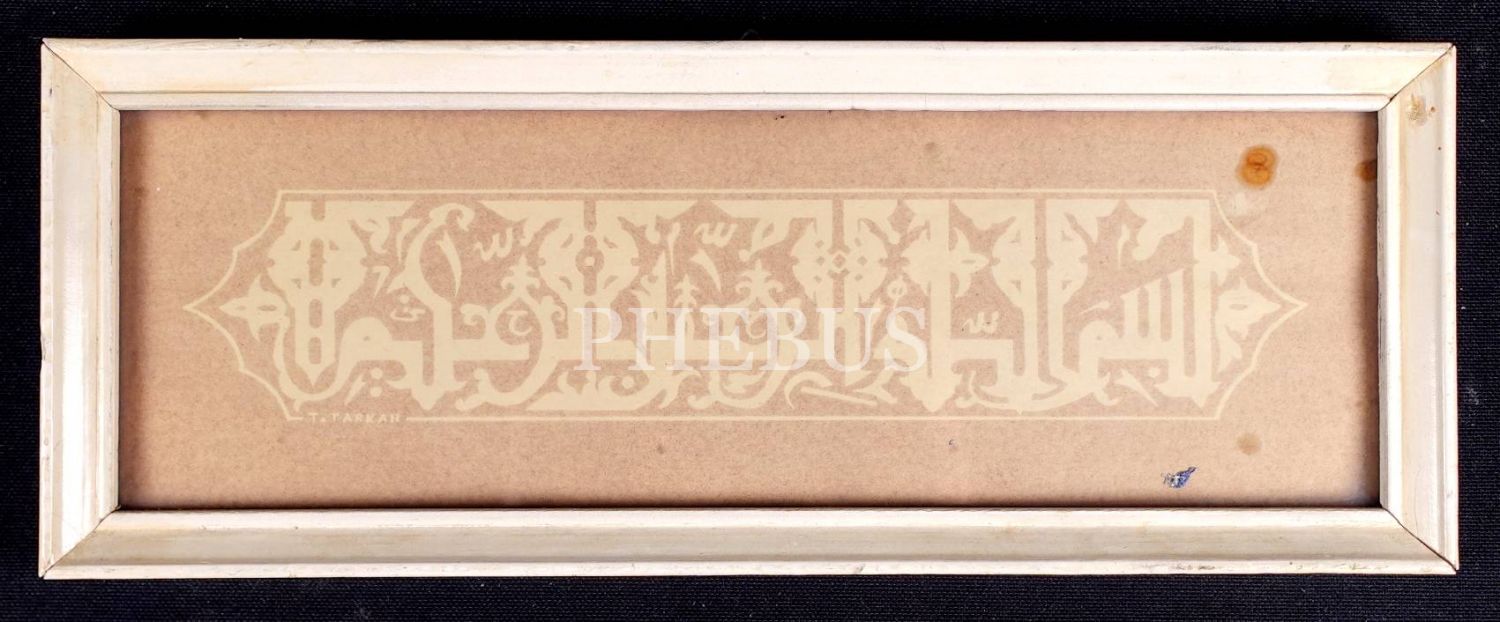 T. Tarkan imzalı, rölyef tekniği ile kûfi besmele (baskı), 12x30 cm
