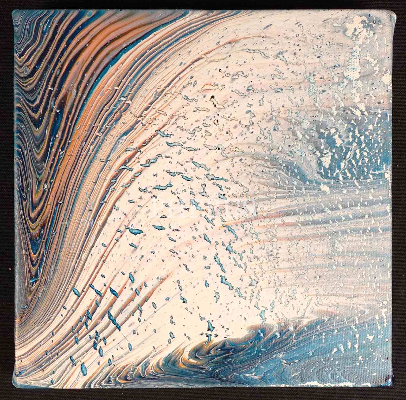 Nedim imzalı, modern teknikte tuval üzerine ebru resim, 20x20 cm