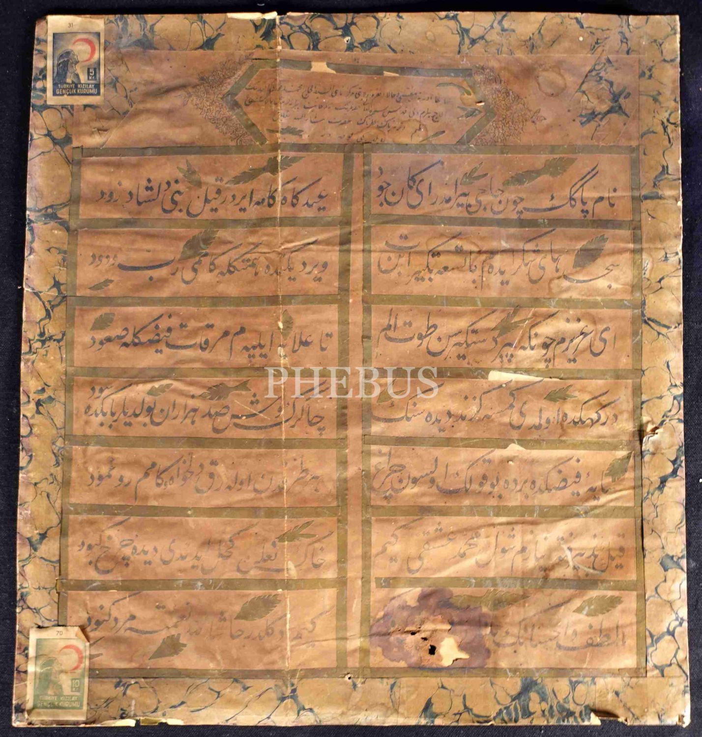 Orijinal eski ahşap çerçevesinde, erken dönem ta´lik yazı ile yazılmış kaside (Ankara Vilayeti Merkez Naibi Seyyid el-Hac Mehmed Fevzi Efendi´nin Hacı Bayram Veli´nin türbesine astığı levha), 35x38 cm