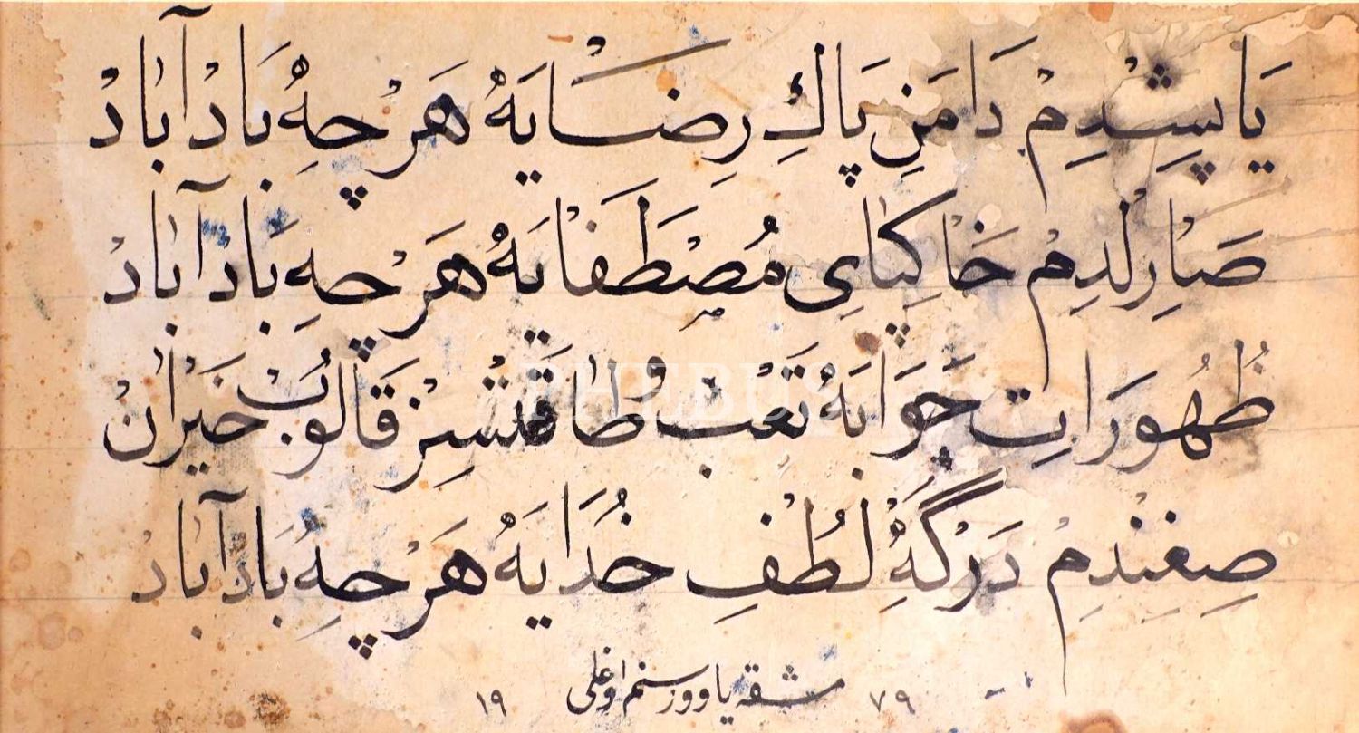 "Yapışdım dâmen-i pâk-i rızâya her-çi bâd-âbâd Sarıldım hâk-i pâk-i Mustafâ´ya her-çi bâd-âbâd Zuhûrât u cevâbe tâb ü tâkatsiz kalub hayrân Sığındım der-geh-i lûtf-ı Hudâ´ya her-çi bâd-âbâd" İlhâmî (Sultan III. Selim)