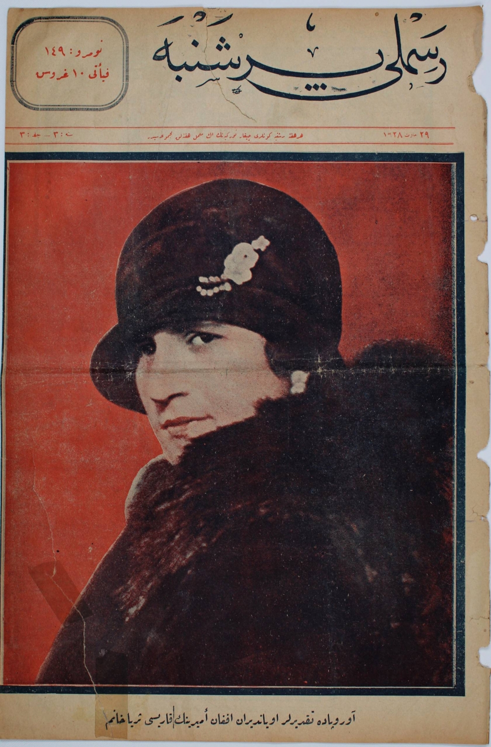 Osmanlıca hicri 1328 tarihli mecmua: Resimli Perşembe, kapak " Avrupa'da takdirler uyandıran Afgan Emirinin Karısı Serya Hanım"
