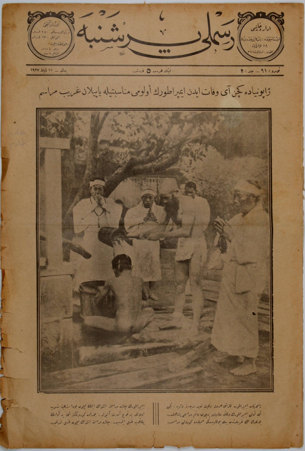Osmanlıca 1926 tarihli mecmua: Resimli Perşembe, "Japonyada Geçen Ay Vefat Eden İmparatorun Ölümü Münasebetiyle Yapılan Garip Merasim".