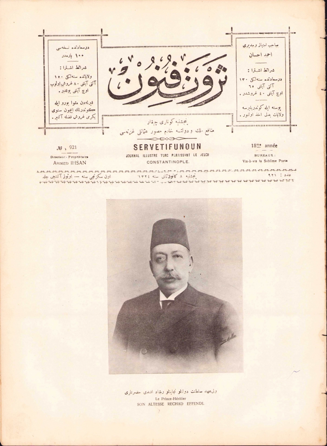 Osmanlıca hicri 1324 tarihli Serveti Fünun gazetesi, "Reşad Efendi Hazretleri" kapaklı, resimli, 18 sayfa, 24x33 cm.