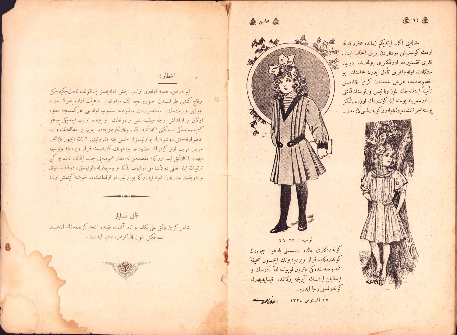 Osmanlıca 1324 tarihli Mahasin Mecmuası 1. SAYI, Dernesesyan Matbaası, Dersaadet, 64 sayfa, 16x24 cm
