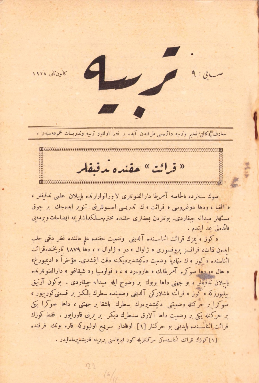 Osmanlıca Terbiye Mecmuası, Devlet Matbaası, 1928, 88 sayfa, 16x24 cm