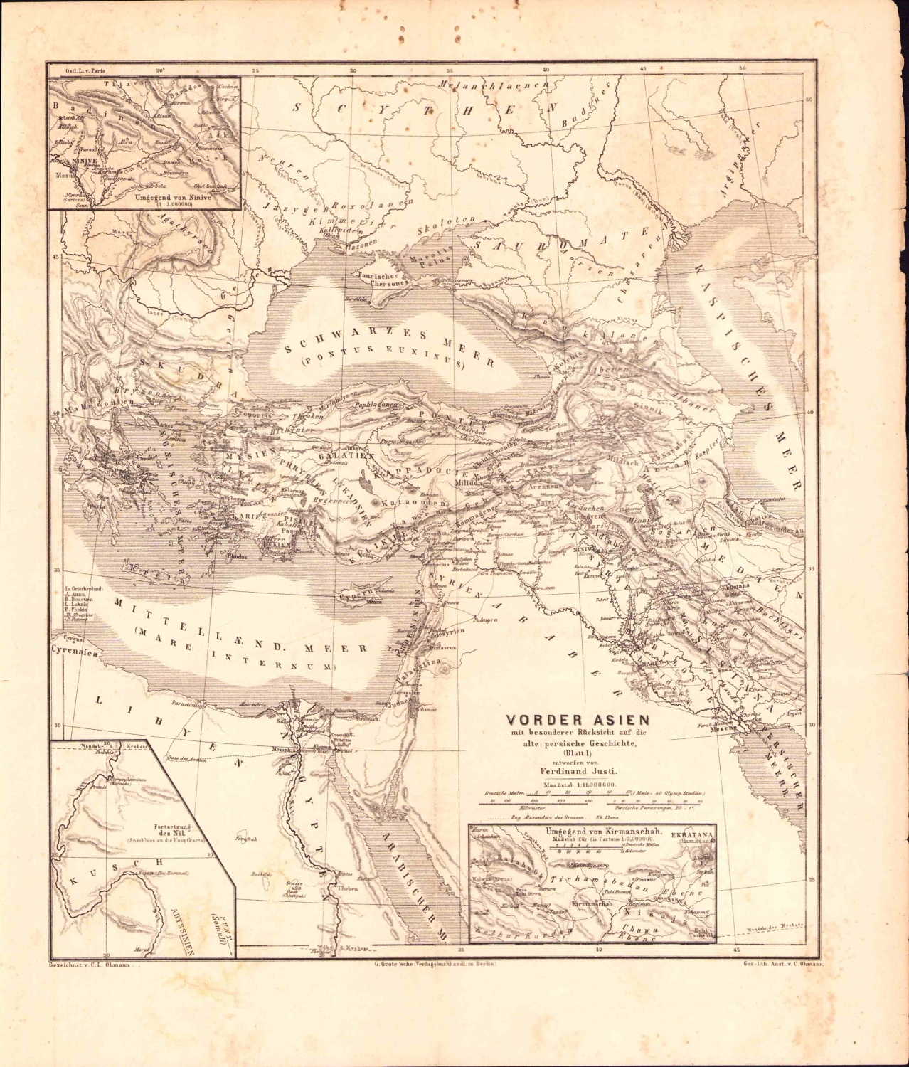 Fransızca Güneybatı Asya haritası, Berlin baskı, 30x35 cm.