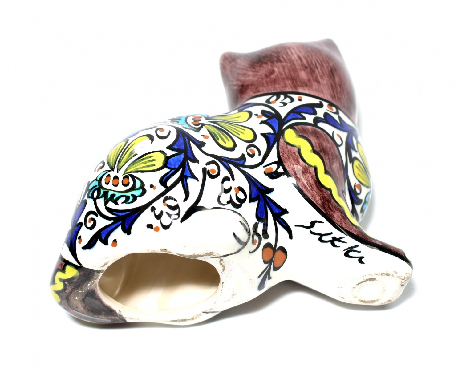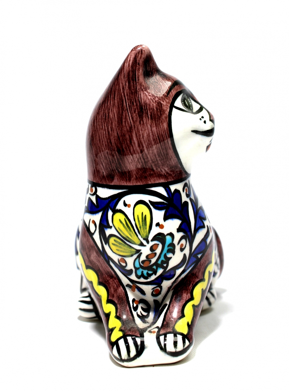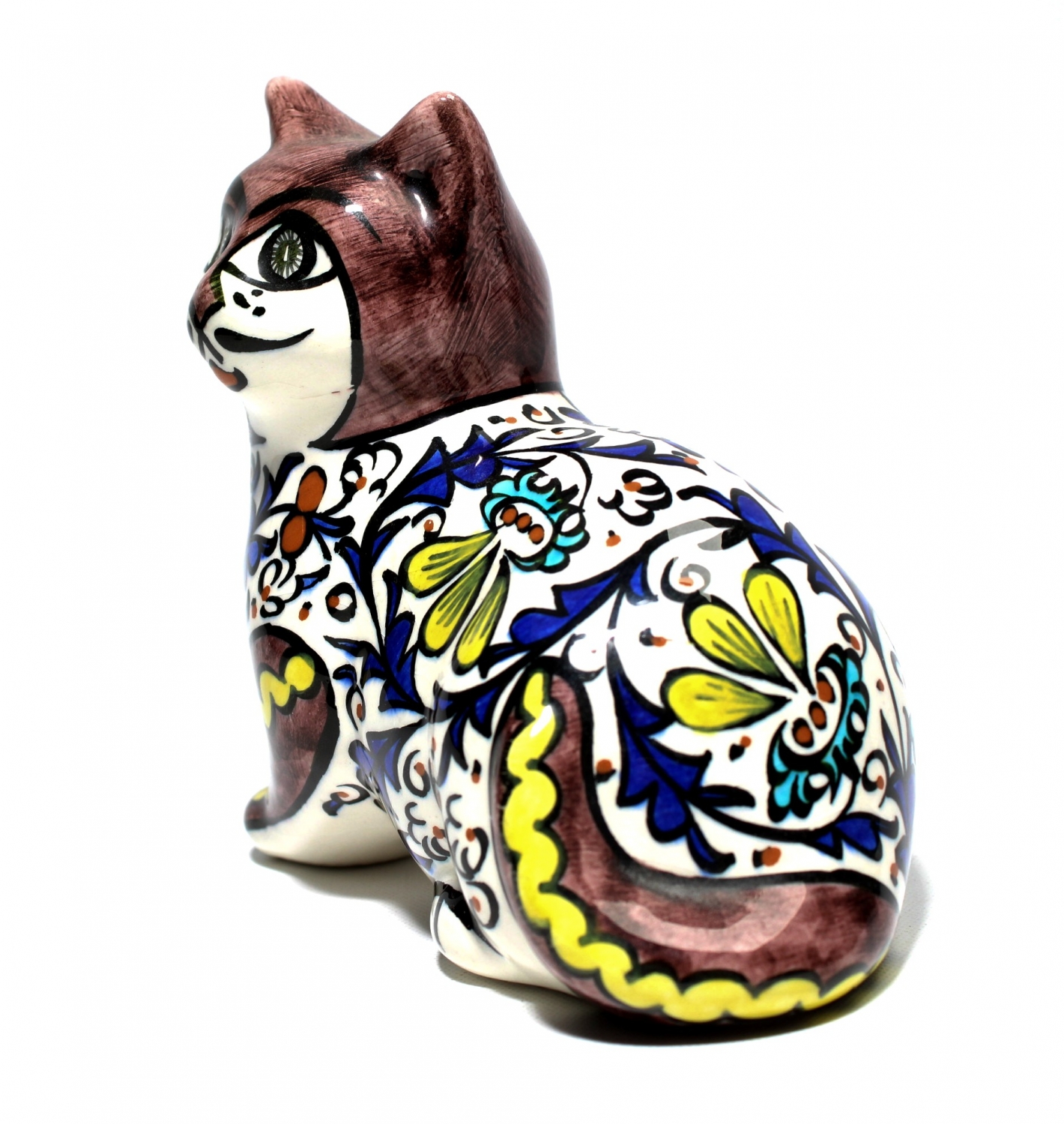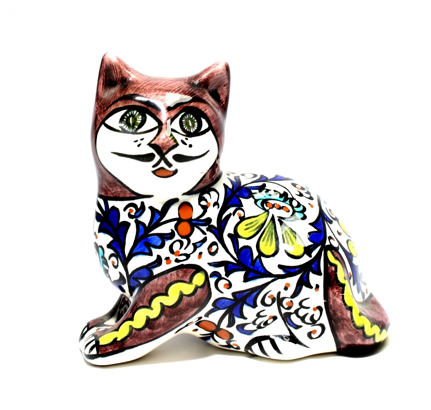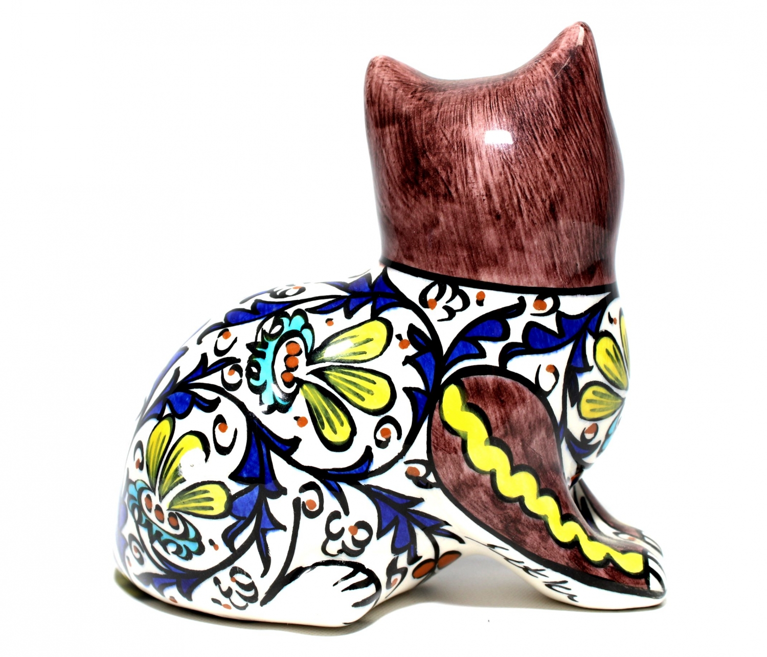 Sıtkı Olçar imzalı Kütahya seramik kedi biblosu, 14x13x7 cm