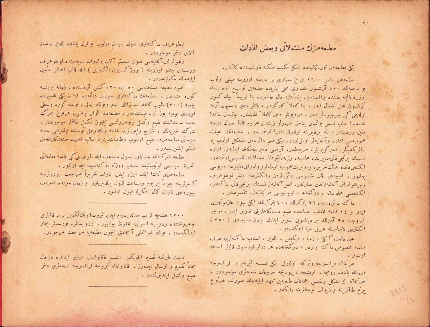 Ahmed İhsan Matbaası, 1912 tarihli tanıtım kataloğu, Matbaa-i Halik