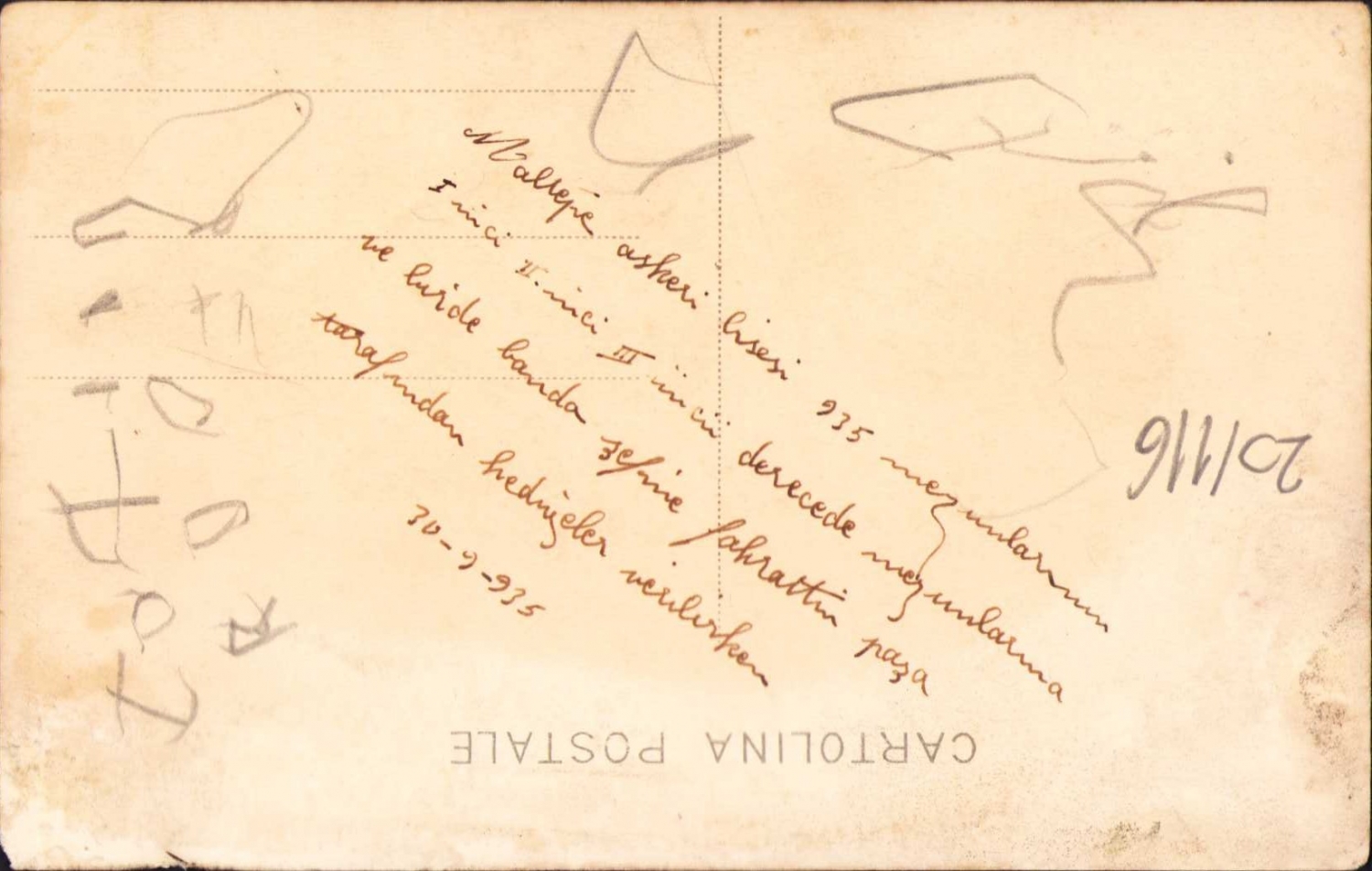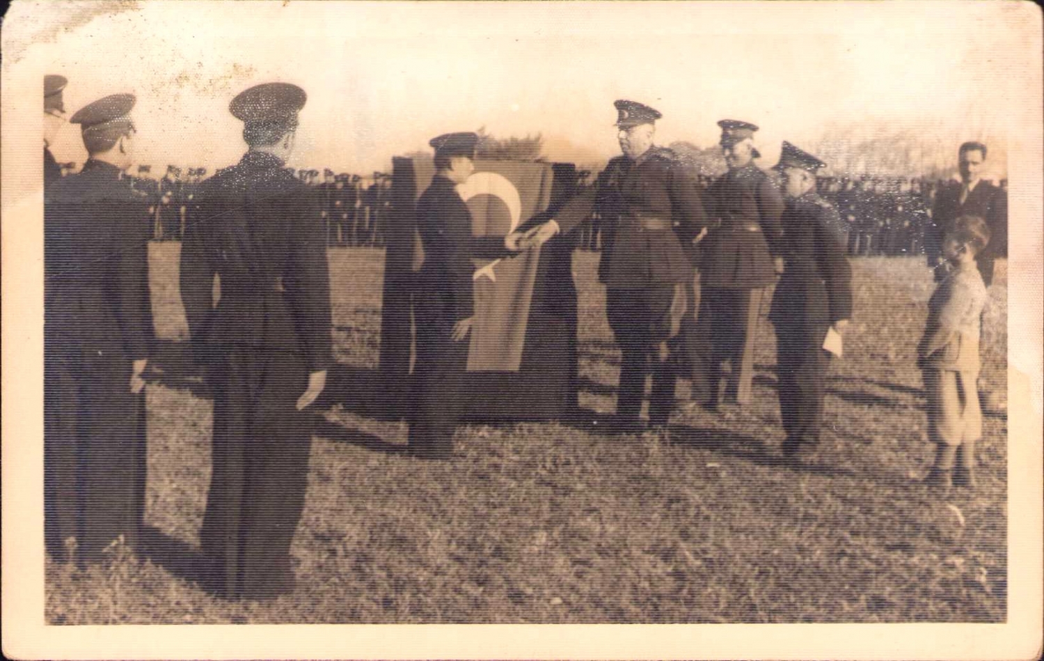 1935 yılı Maltepe Askeri Lisesi mezuniyet töreninde dereceye giren öğrencilere Fahrettin Paşa tarafından hediyeleri veriliyor.