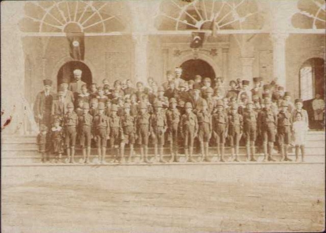Osmanlı dönemi muallim ve öğrenci fotoğrafları, küçük boy, 5,5x4 cm 3 adet fotoğraf bir arada.