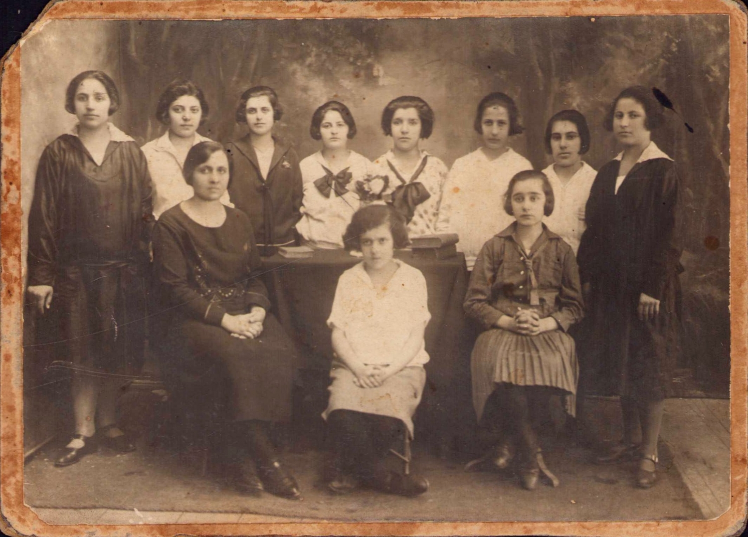 Erken dönem kız mektep öğrencileri, bir kenarı kopuk, 17x12 cm.