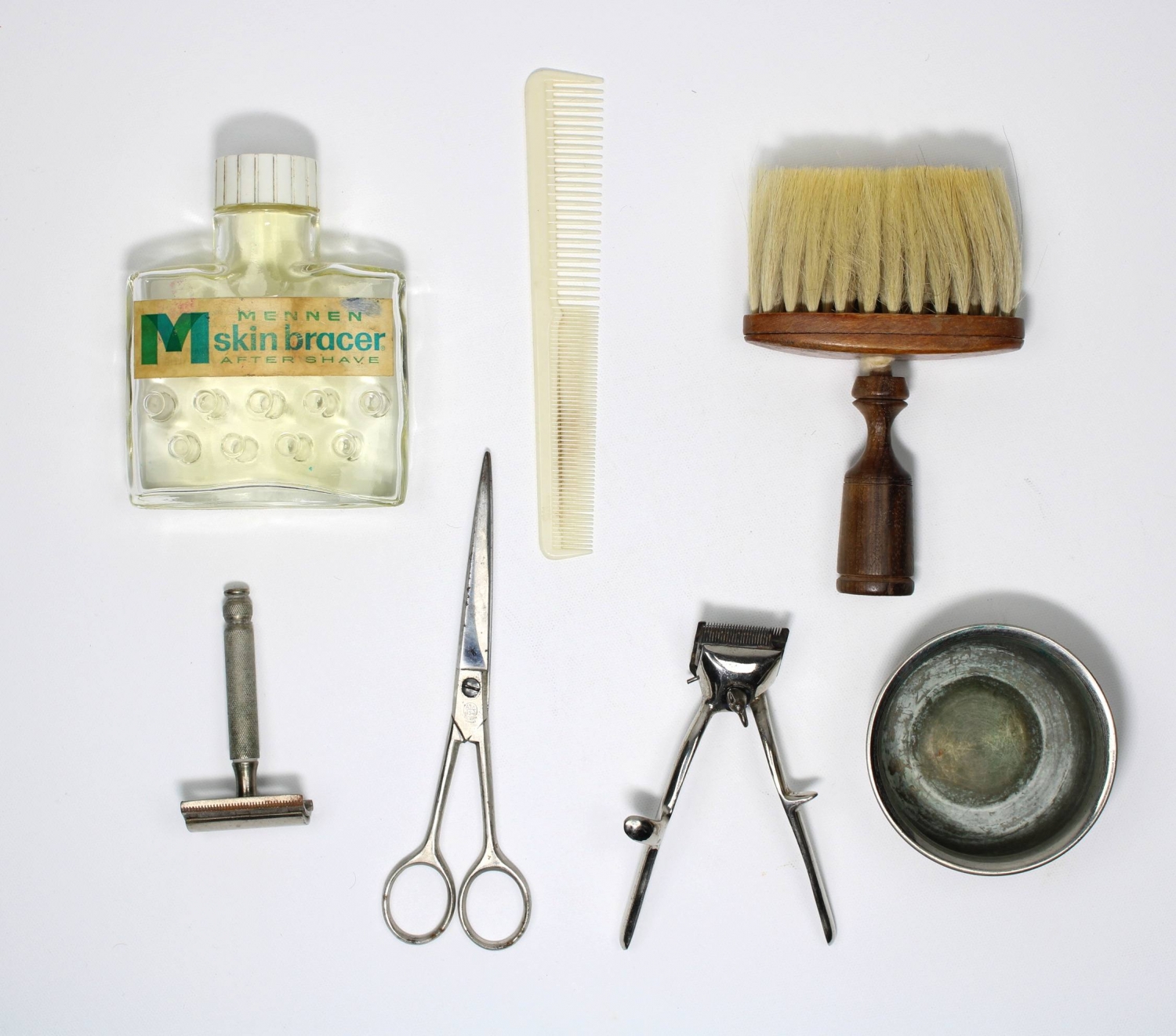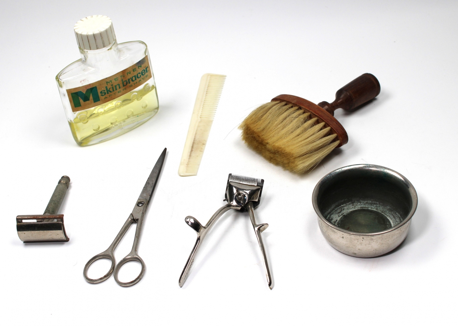 Berber seti, kolonya-tarak-makas-jilet-traş makinası-fırça-sabun tası