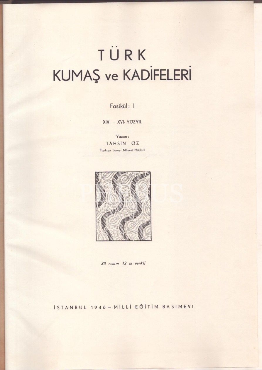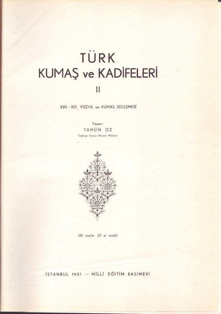 TÜRK KUMAŞ VE KADİFELERİ (2 Cilt), Tahsin Öz, Millî Eğitim Basımevi, İstanbul - 1946/51, 120+263 sayfa, 25x34 cm