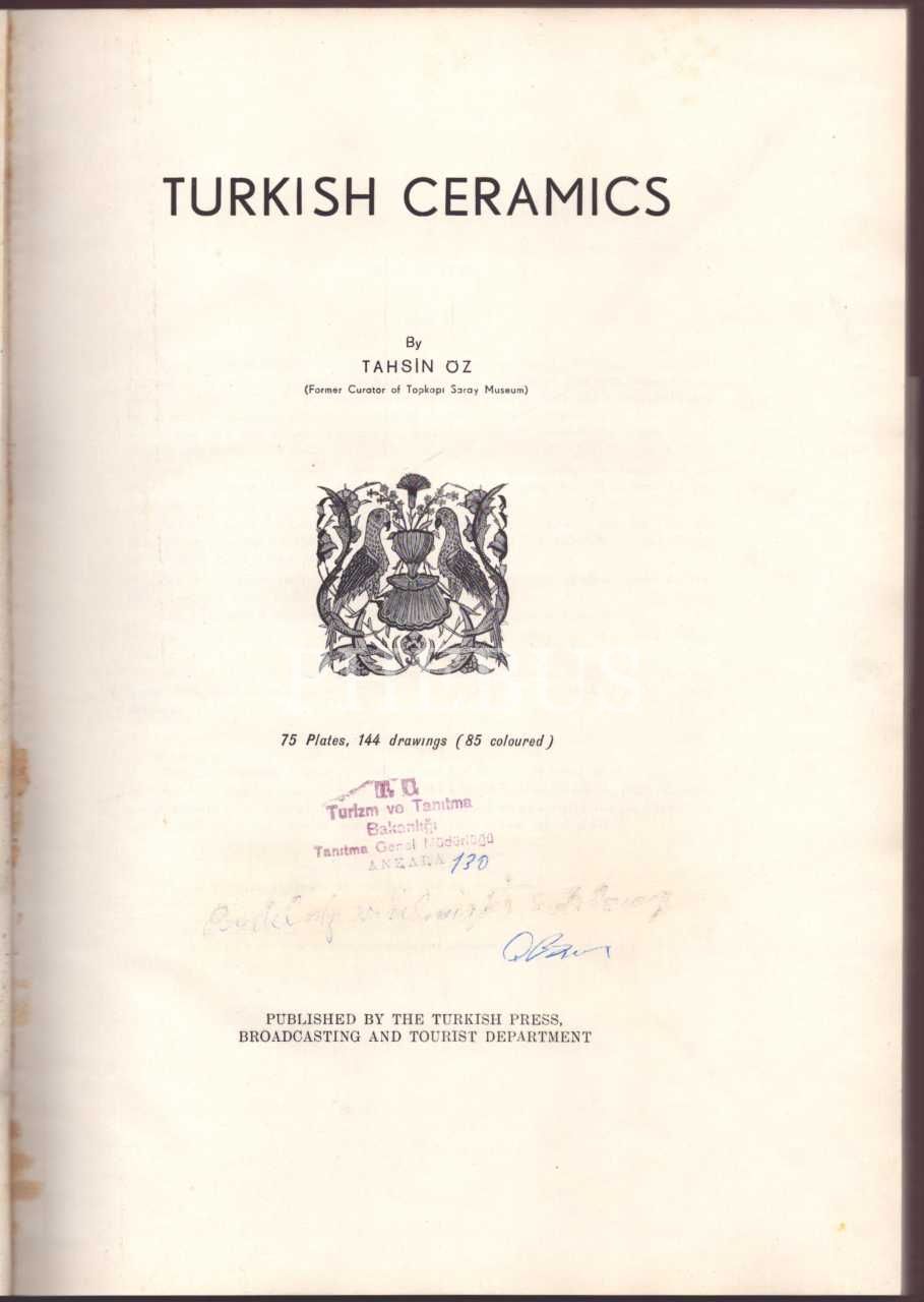 TURKISH CERAMICS, Tahsin Öz, Turkish Press, Broadcasting And Tourist Department, 144 sayfa, 25x34 cm