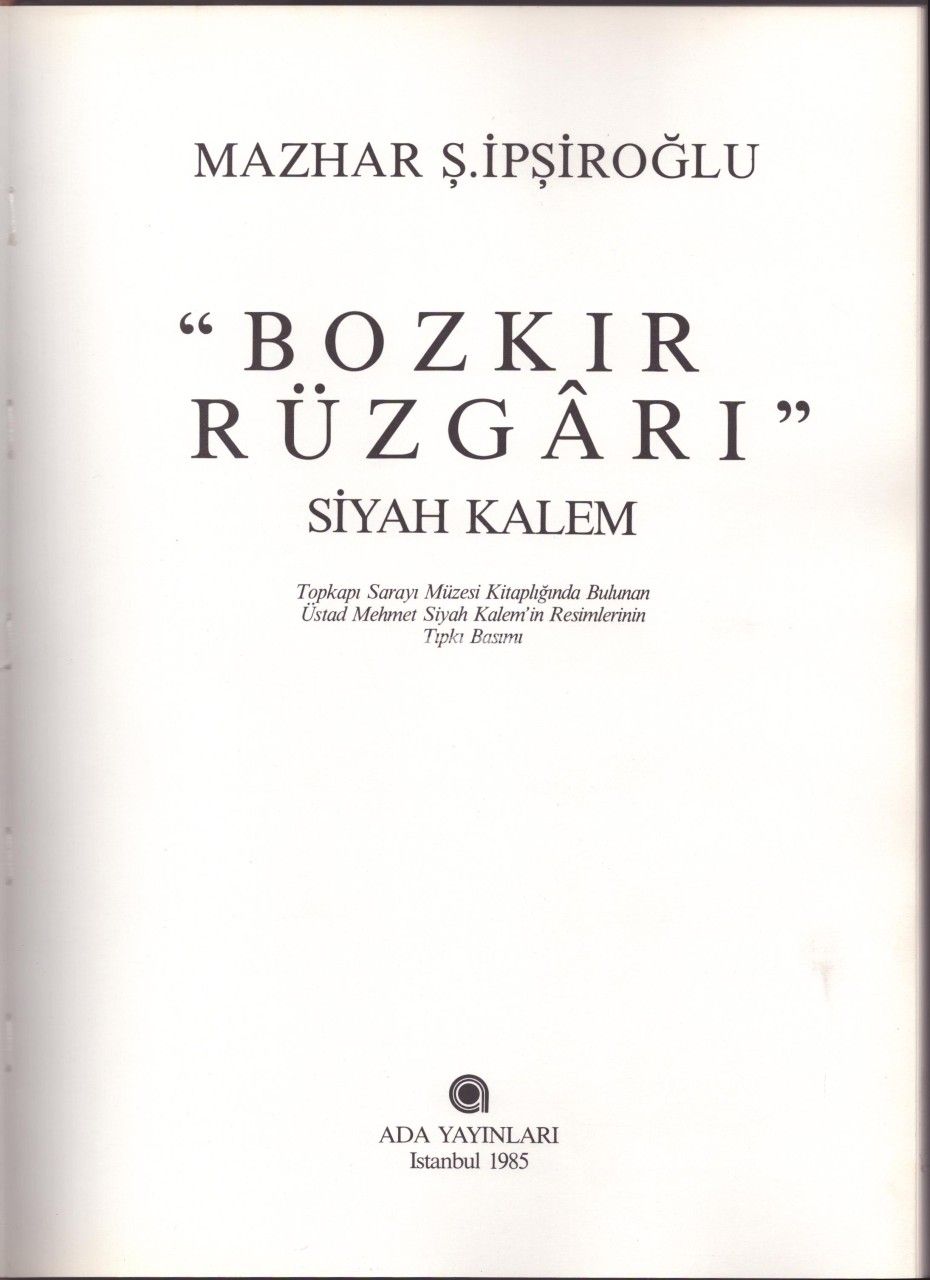 "BOZKIR RÜZGÂRI" SİYAH KALEM (Topkapı Sarayı Müzesi Kitaplığında Bulunan Üstad Mehmet Siyah Kalem´in Resimlerinin Tıpkı Basımı), Mazhar Ş. İpşiroğlu, Ada Yayınları, İstanbul - 1985, 40+54 sayfa, 29x39 cm