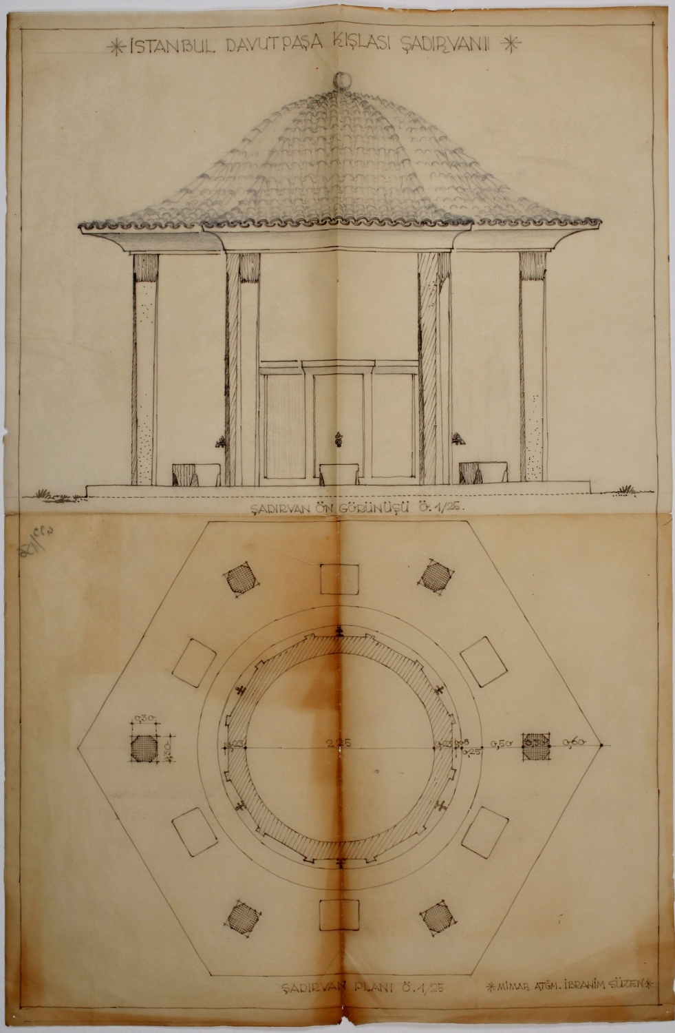 İstanbul Davutpaşa Kışlası Şadırvanına ait çizim, 46x30 cm.