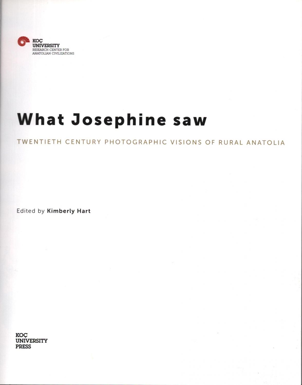 WHAT JOSEPHINE SAW (Twentieth Century Photographic Visions of Rural Anatolia), Kimberly Hart, Koç University Press, 2012, 247 sayfa, 23x28 cm