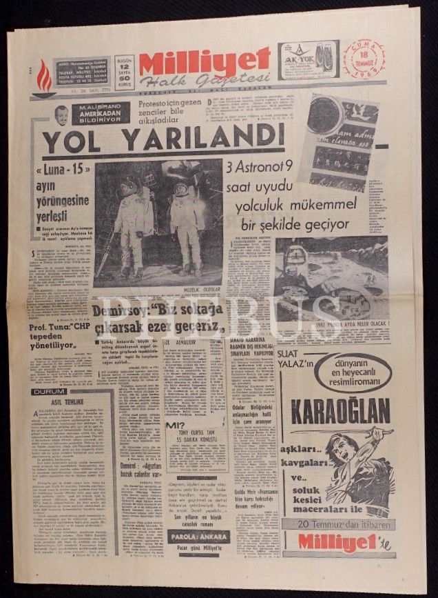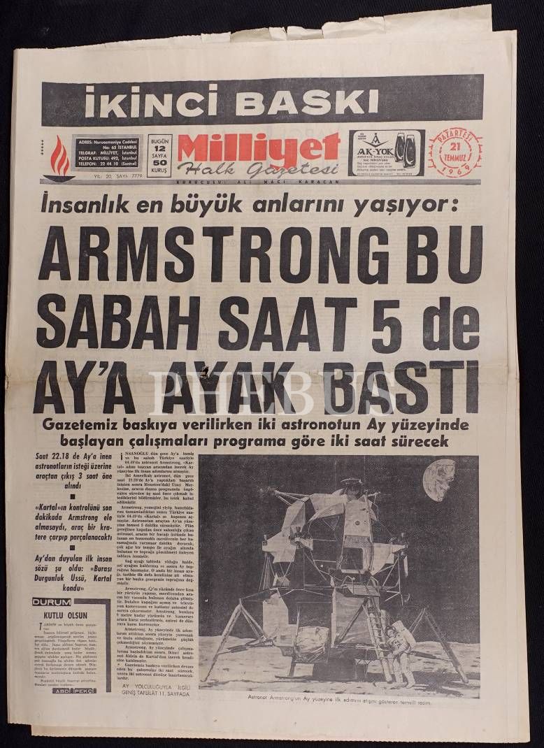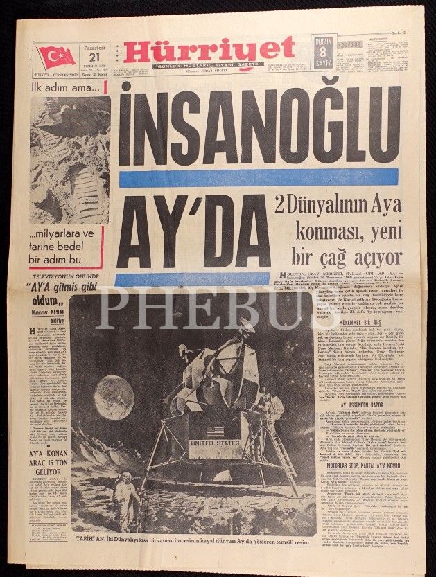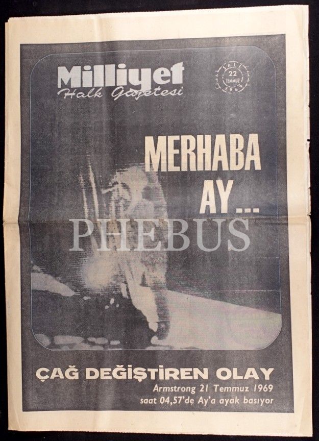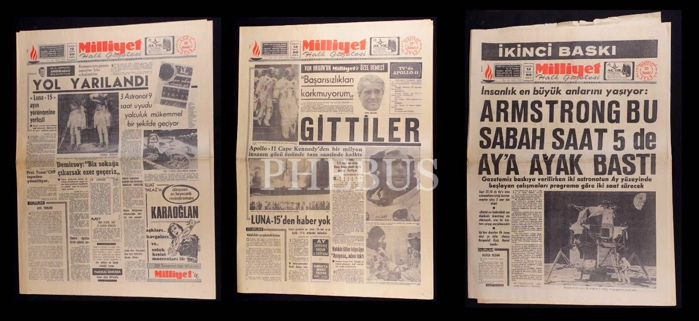 Lot; 21 Temmuz 1969 tarihli HÜRRİYET gazetesi ile 17-18-21-22 Temmuz 1969 tarihli MİLLİYET gazetelerinden (43x60 cm) oluşmaktadır.