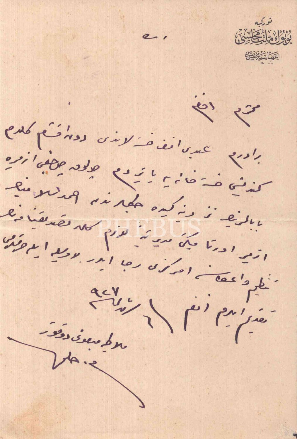 Türkiye Büyük Millet Meclisi antetli, Malatya Mebusu tarafından yazılan 1927 tarihli dilekçe, 13x20 cm