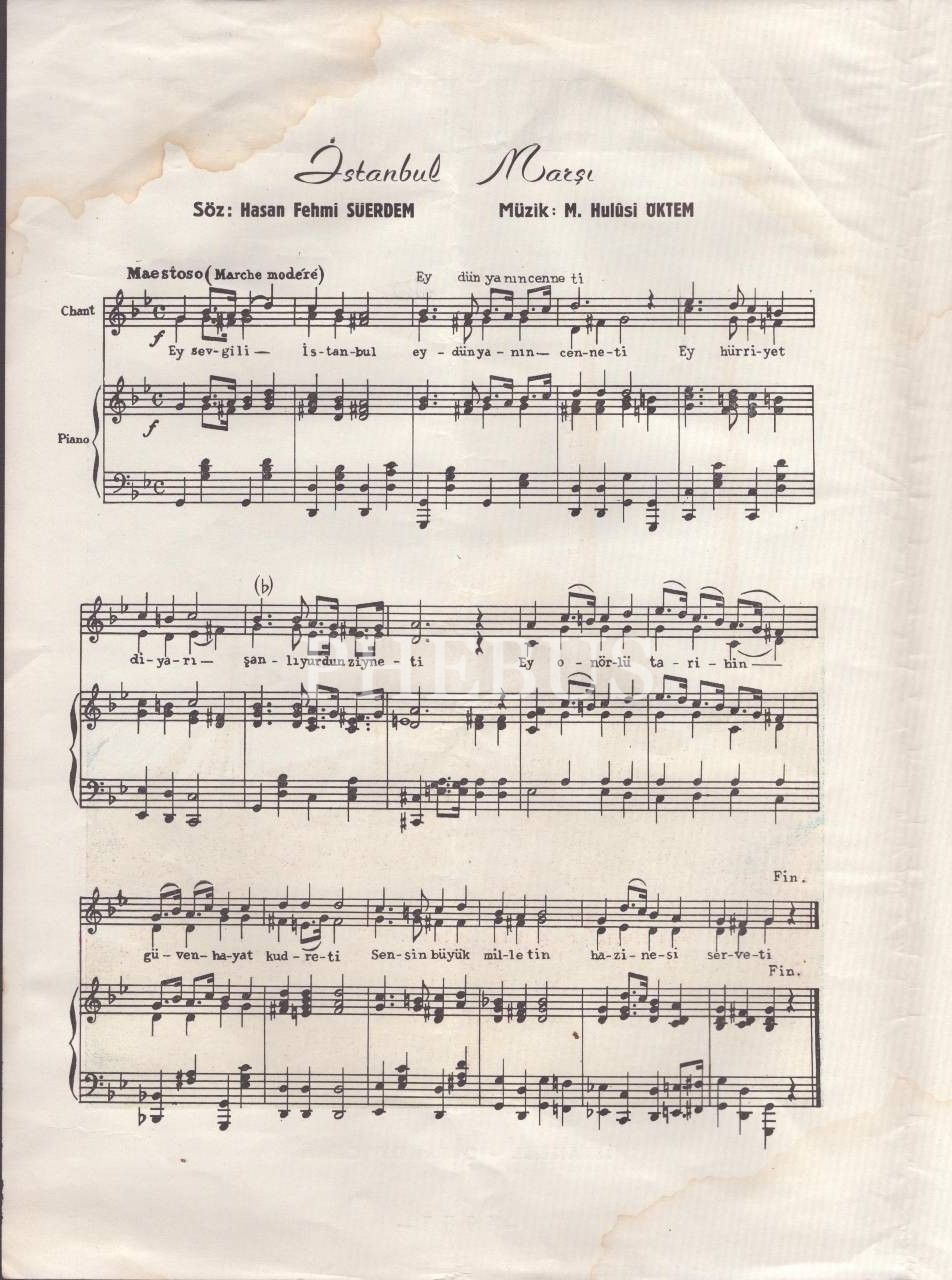 İSTANBUL MARŞI, Hasan Fehmi Suerdem-M. Hulûsi Öktem, 1955, 24x35 cm
