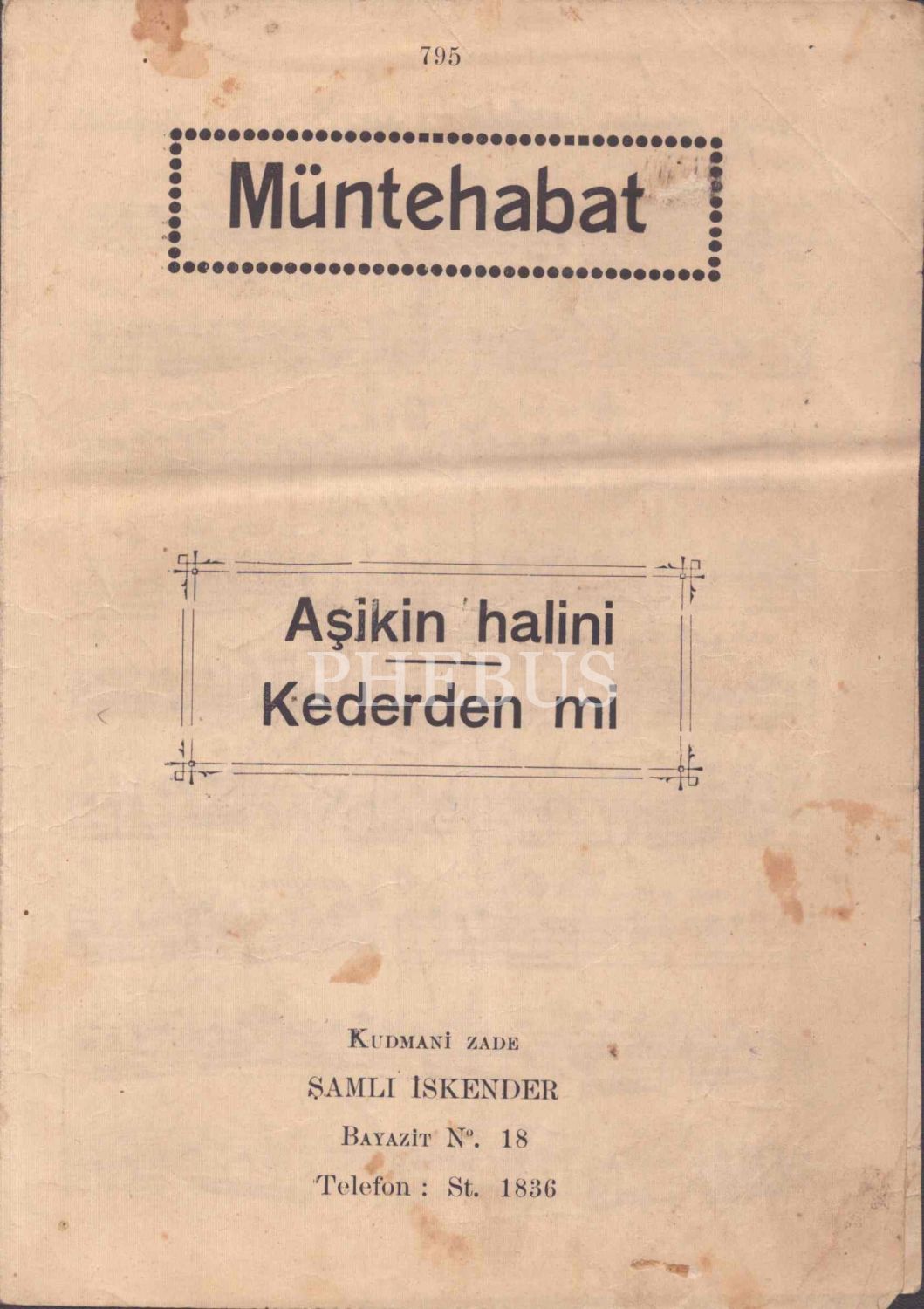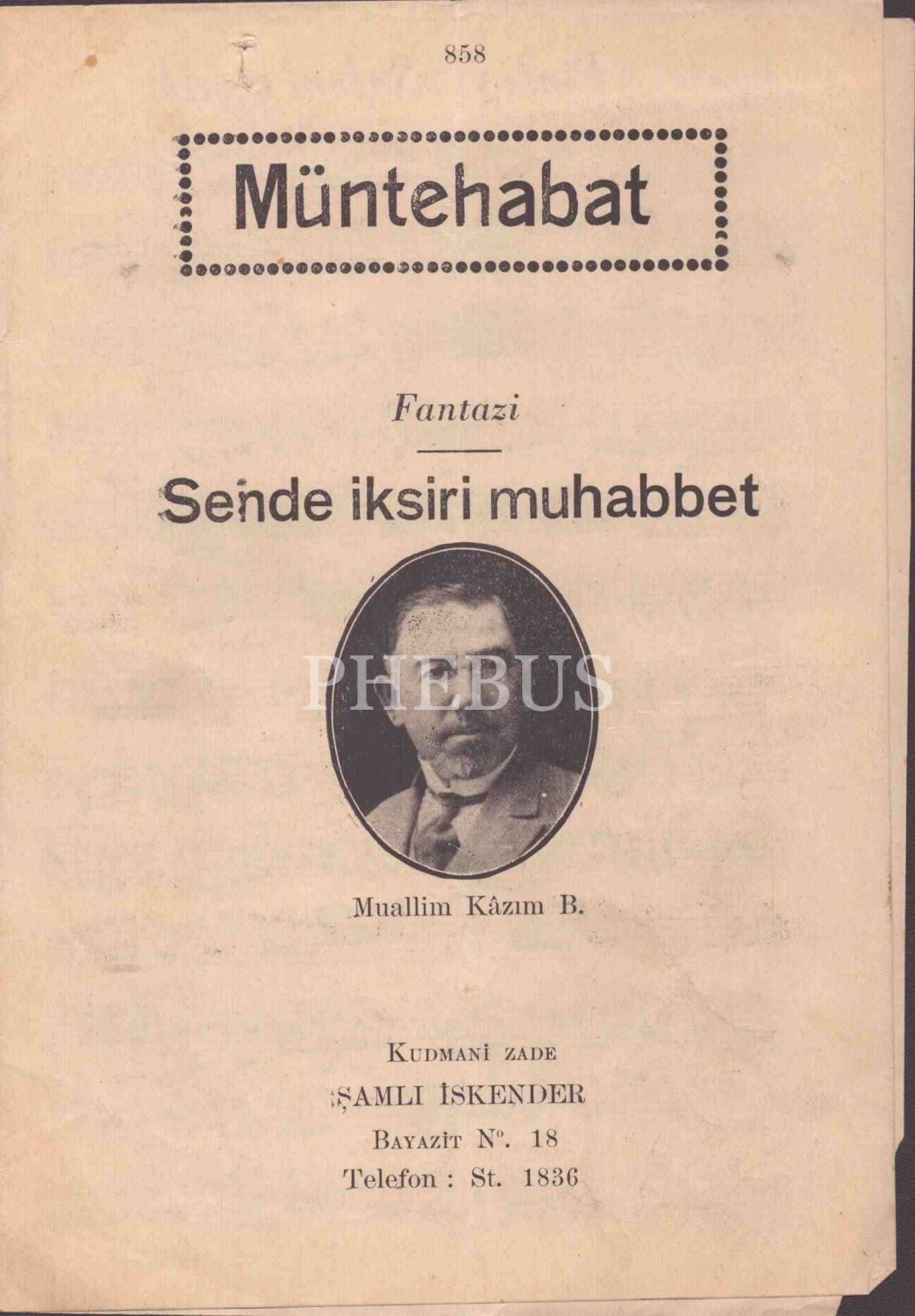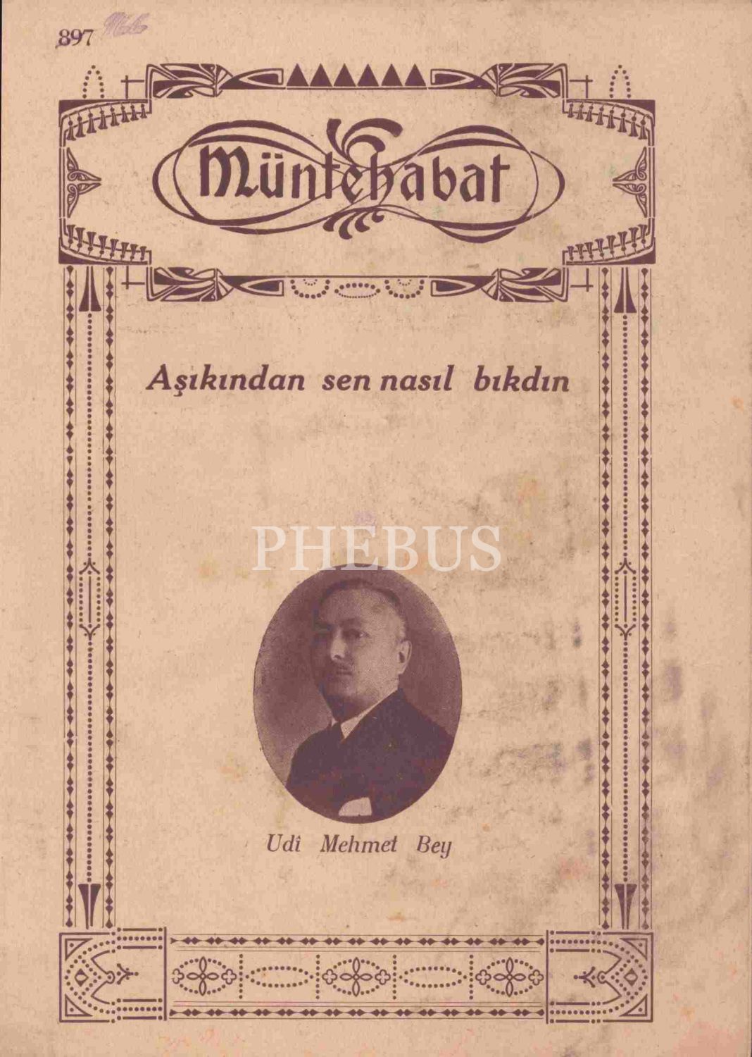 Notalar; Kanuni Artaki Efendi´ye ait "Sevdama Yakın Gel", "Aşikin Halini Kederden mi", "Bu Gece Çamlarda Kalsak Ne Olur"; Udi Dıramalı Hasan´a ait "Kadın", "Kalbimi Alev Sardı"; Mustafa Bey´e ait "Nerdesin Sen"; Muallim Kazım Bey´e ait "Sende İksiri Muhabbet"; Udi Salahaddin Bey´e ait "Bir Gizli Yalan Söylede", Gönlümde Derin"; Udi Mehmet Bey´e ait "Aşıkından Sen Nasıl Bıktın".