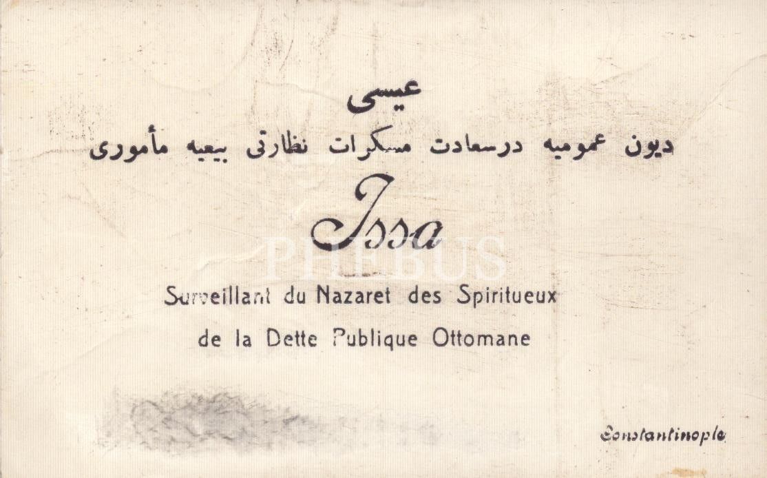 Duyûn-ı Umûmiye Dersaadet Müskirat Nezareti Bey´iyye Memuru İsa´ya ait kartvizit, Constantinople