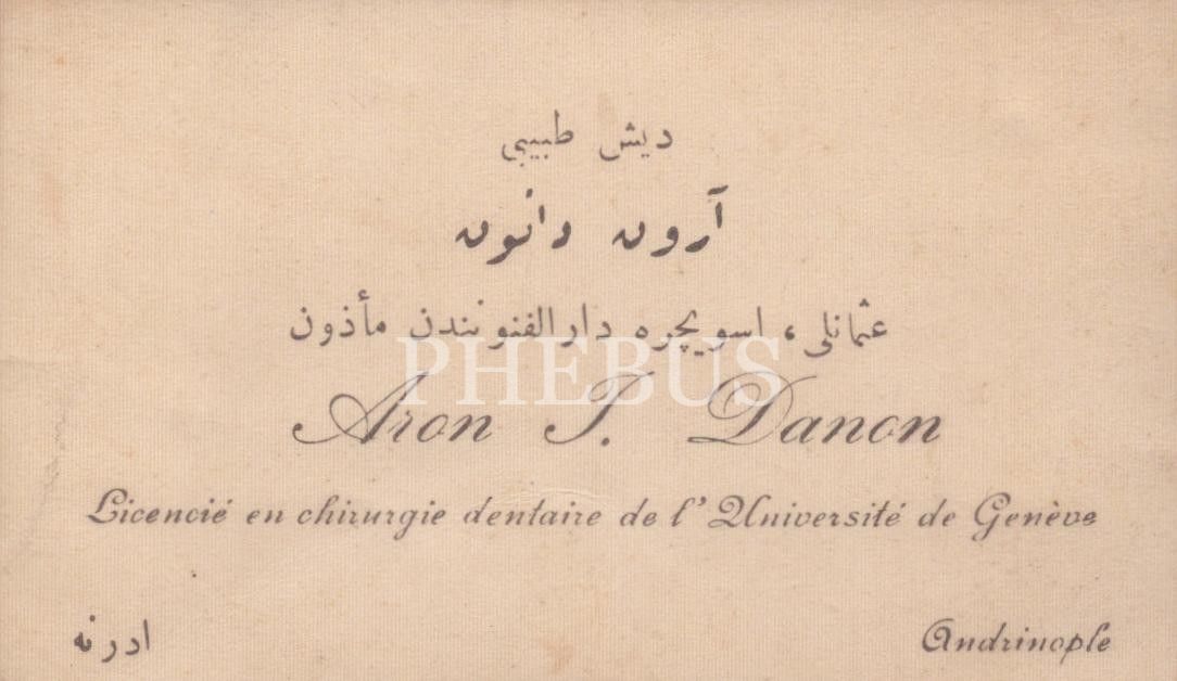 Diş Doktoru Aron Danon´a ait kartvizit, Edirne