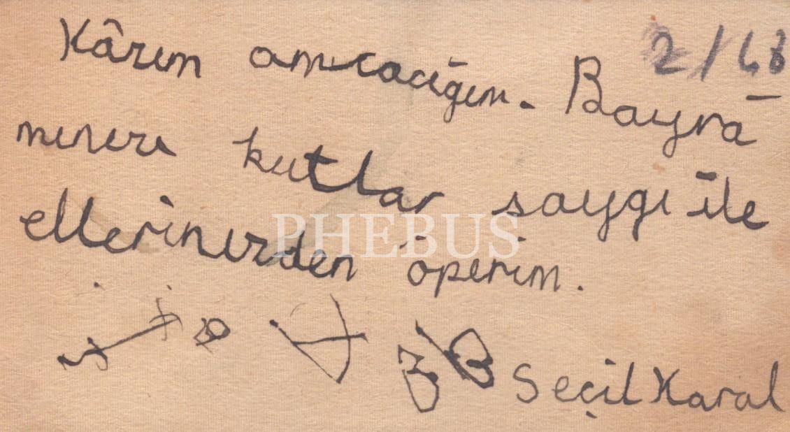 "Kâzım amcacığım bayramınızı kutlar saygı ile ellerinizden öperim." -Seçil Karal