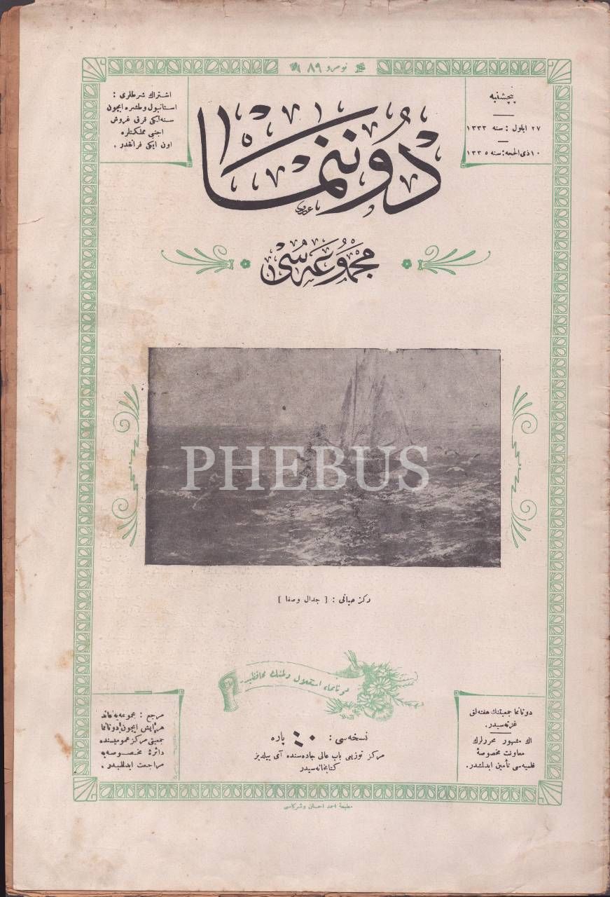 Donanma Cemiyetinin yayın organı DONANMA´nın "Deniz Hayatı [Cidal ve Sefa]" başlıklı kapak görseliyle, 1335 tarihli 89. sayısı, 25x38 cm