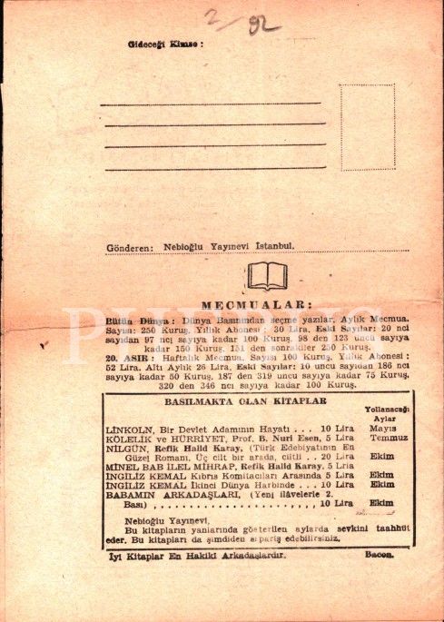 Nebioğlu Yayınevi 1959 Kataloğu, 14x20 cm