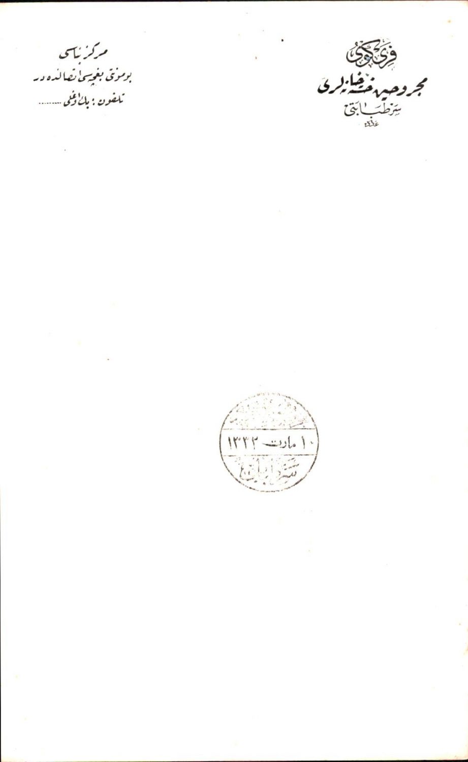 Feriköy Mecruhin [Yaralı] Hastaneleri antetli 10 Mart 1332 tarihli kâğıt, 14x23 cm