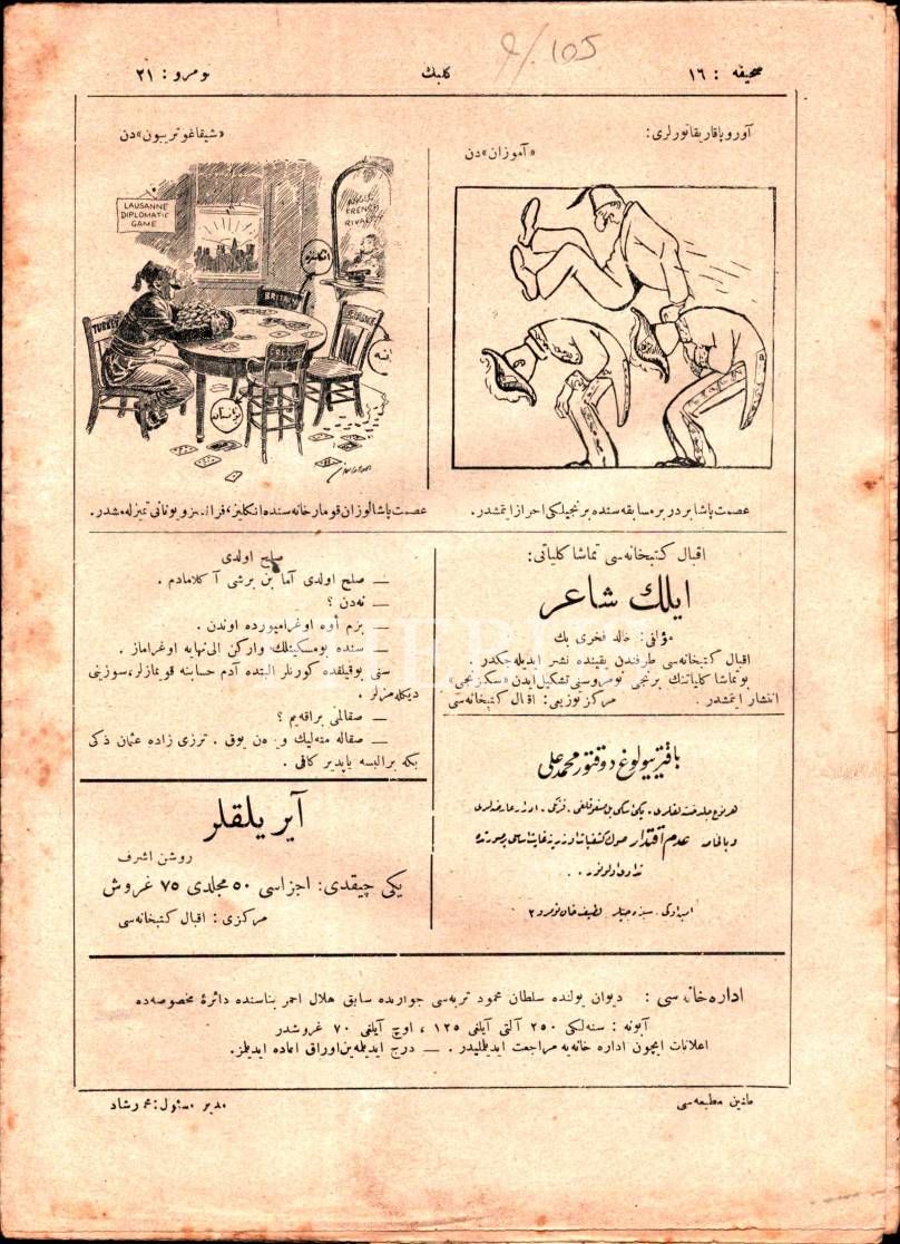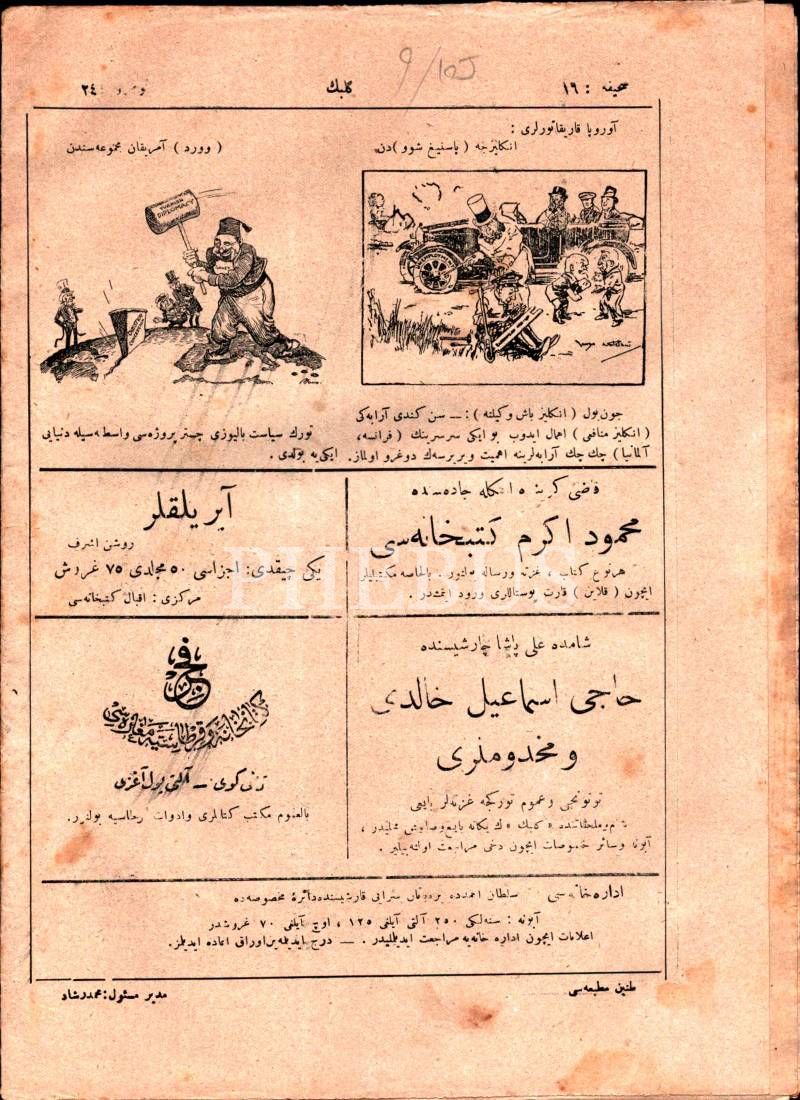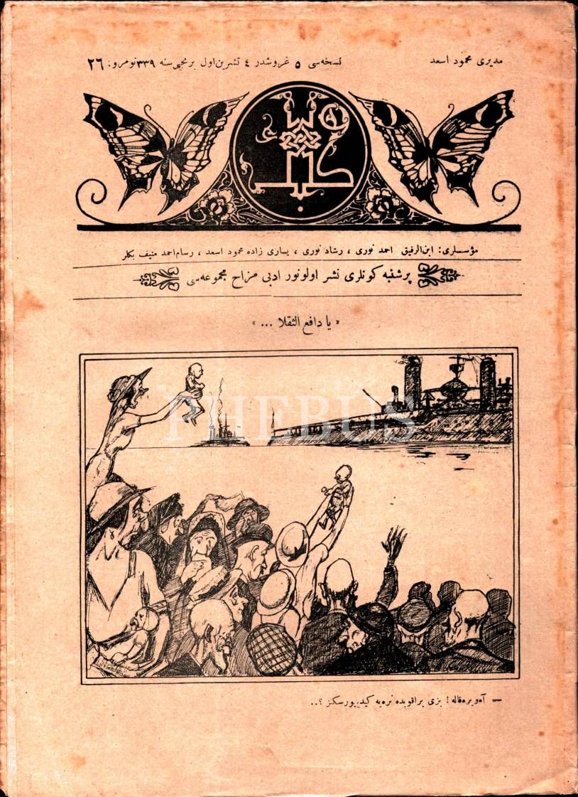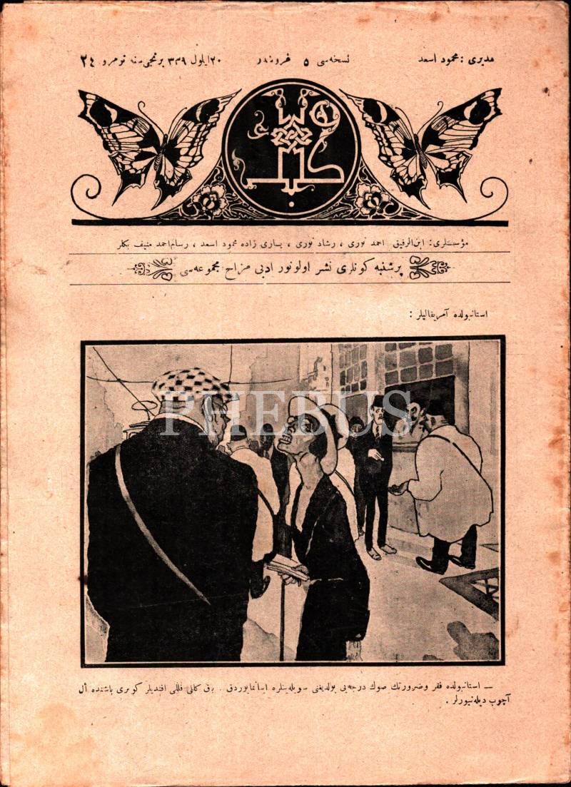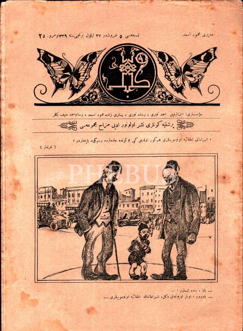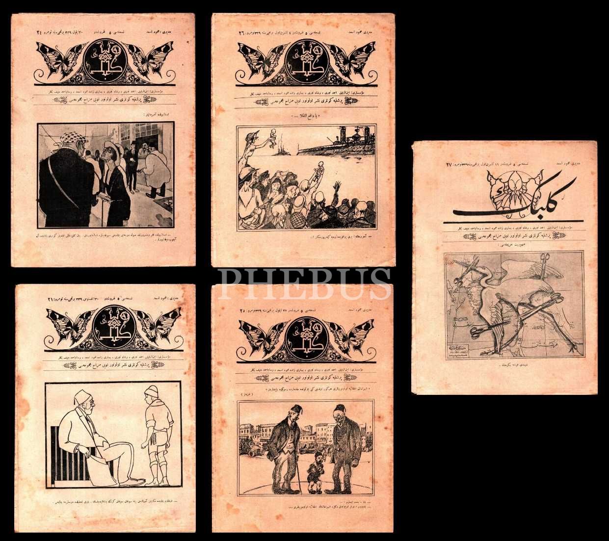 Osmanlıca edebî mizah dergisi KELEBEK´in 1339 tarihli 5 sayısı, 21x28 cm