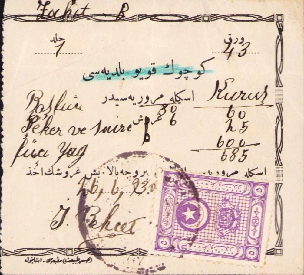 Osmanlıca Küçükkuyu Belediyesi iskele müruriyesi, pullu damgalı, 8x9 cm.