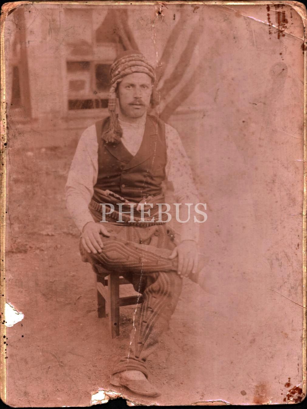 Diyarbakır yöresel kıyafetiyle poz vermiş beyefendi, 13x17 cm, ortadan kırık haliyle