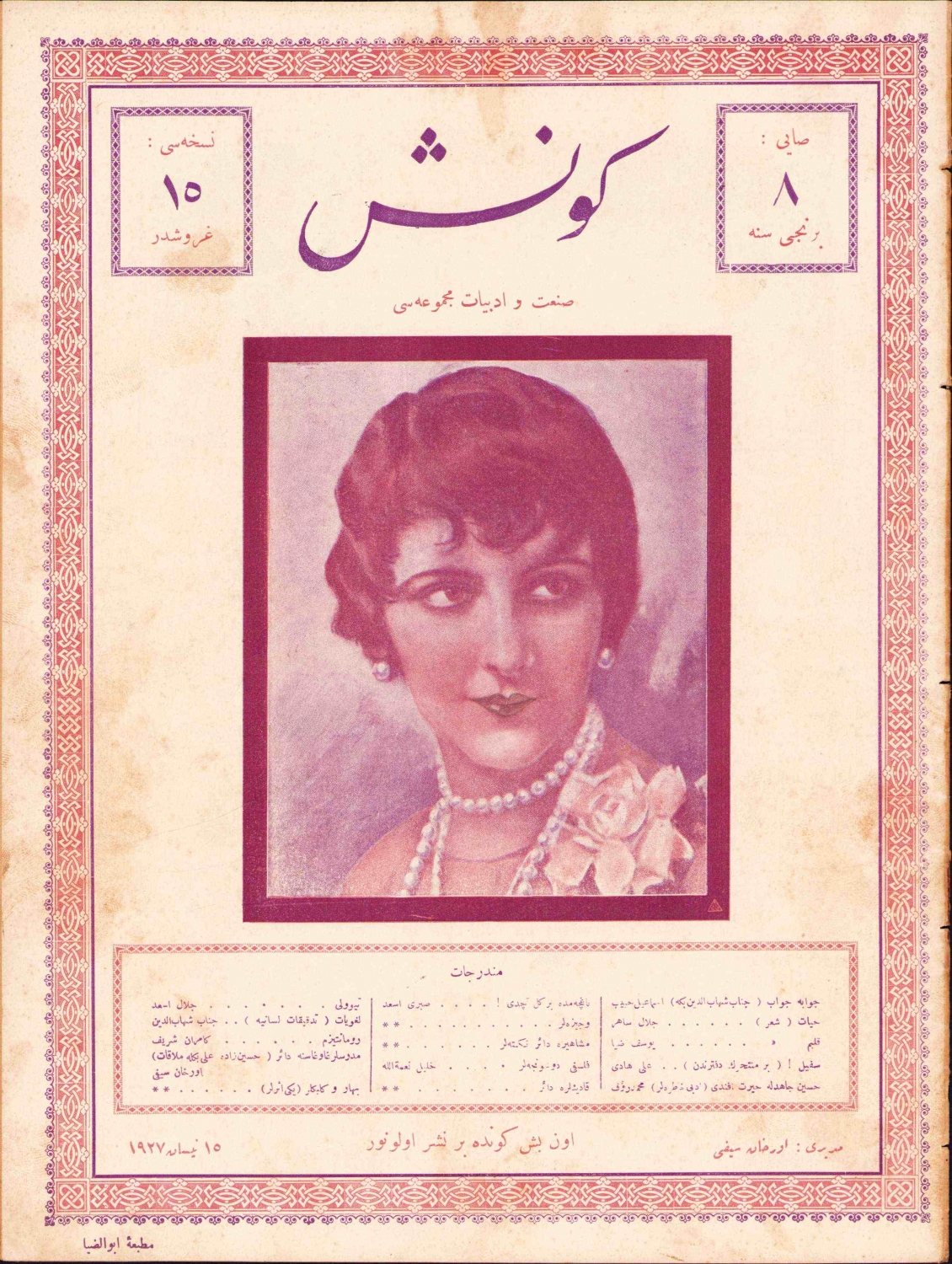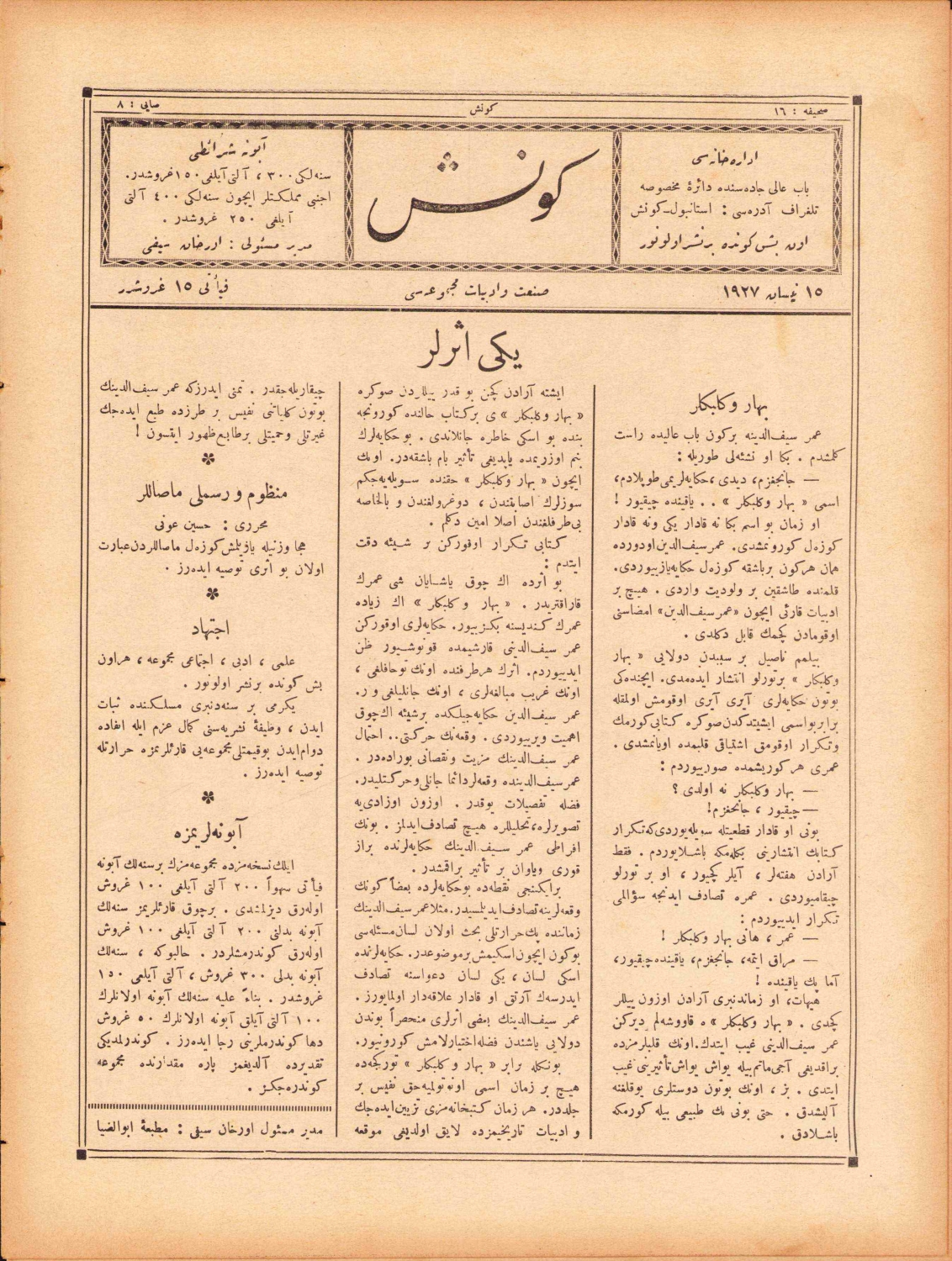 Osmanlıca 1927 tarihli 'Güneş' mecmuası, resimli, 16 sayfa, 22x30 cm.