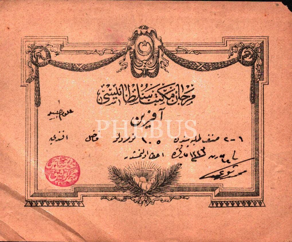 Mercan Mekteb-i Sultanisi´nden 1332 tarihli aferin kâğıdı, 10x13 cm