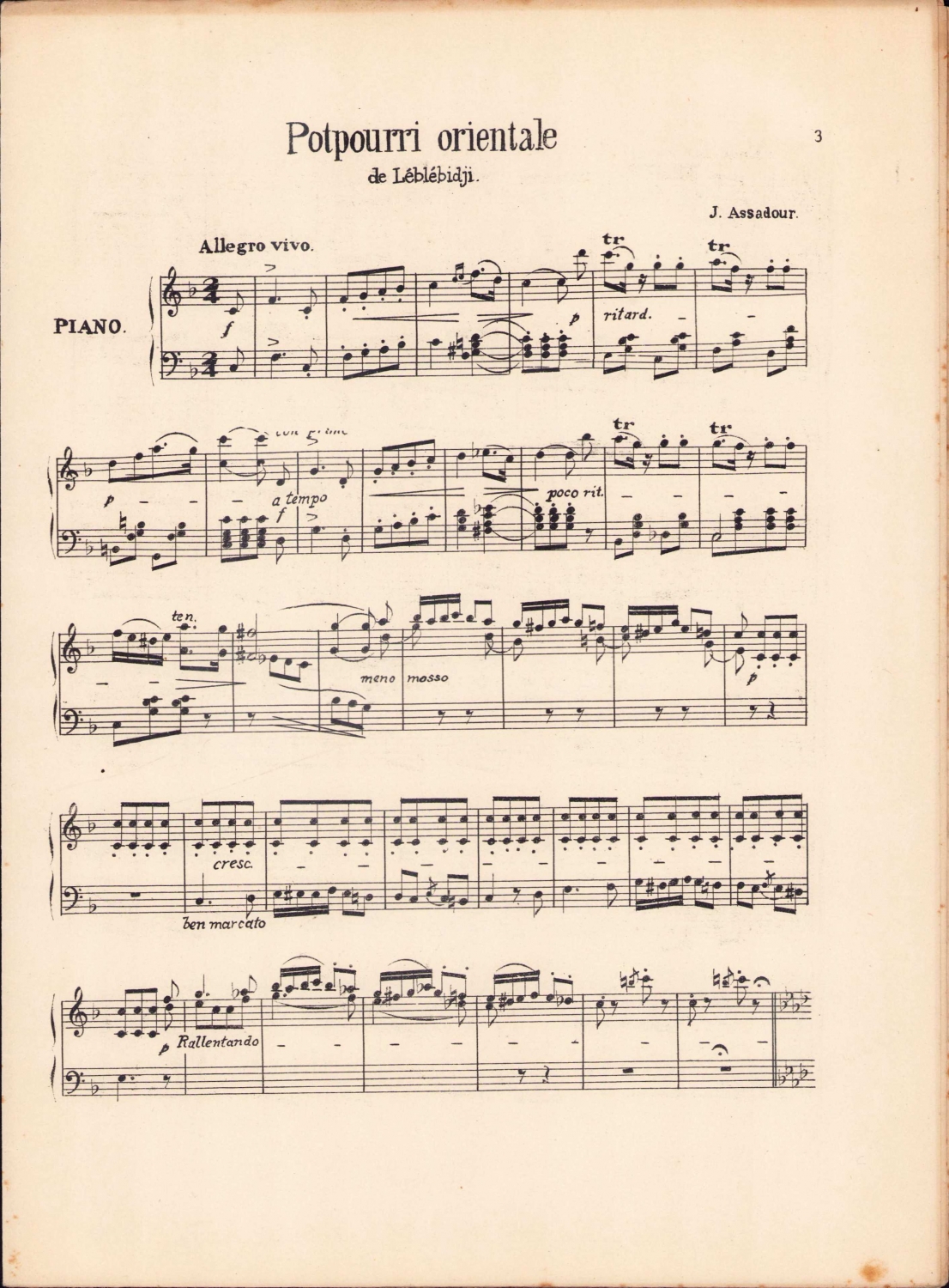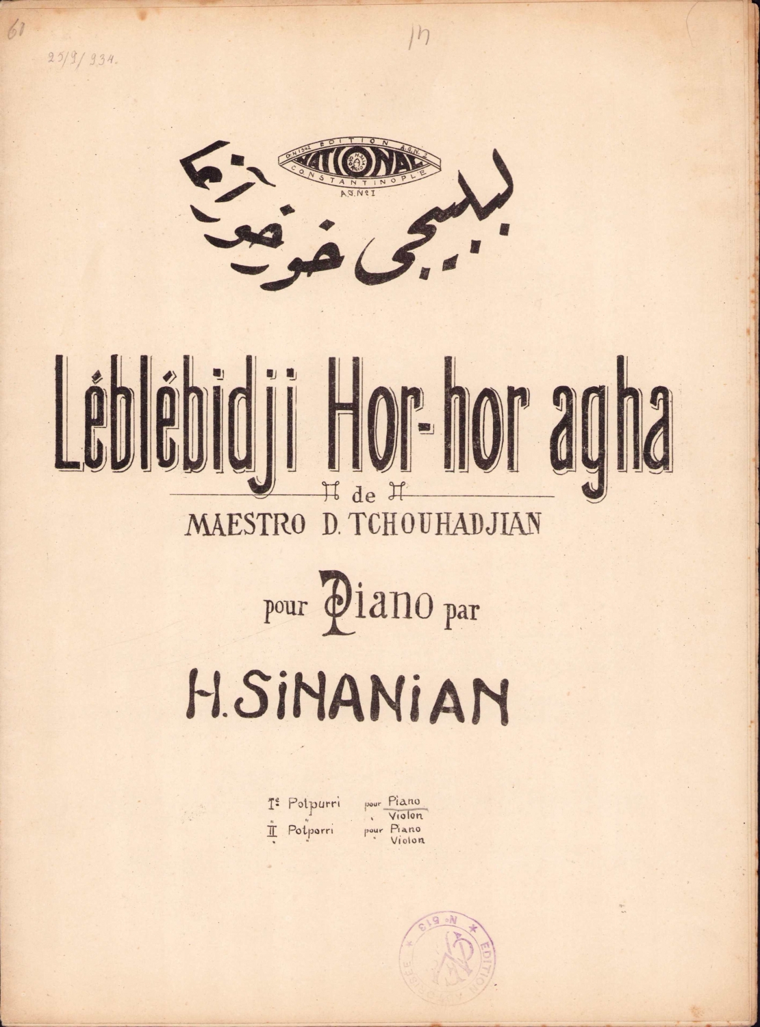 Osmanlıca - Fransızca Leblebici Horhor Ağa, H. Sinanian'un piyano notaları, 15 sayfa, 25x35 cm.