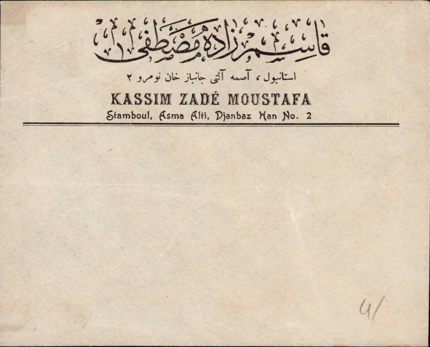Osmanlıca Fransızca Kasımzade Mustafa, İstanbul antetli zarf
