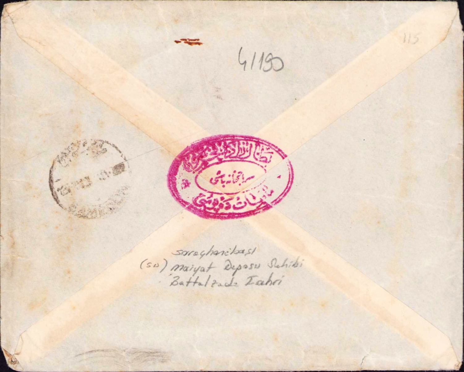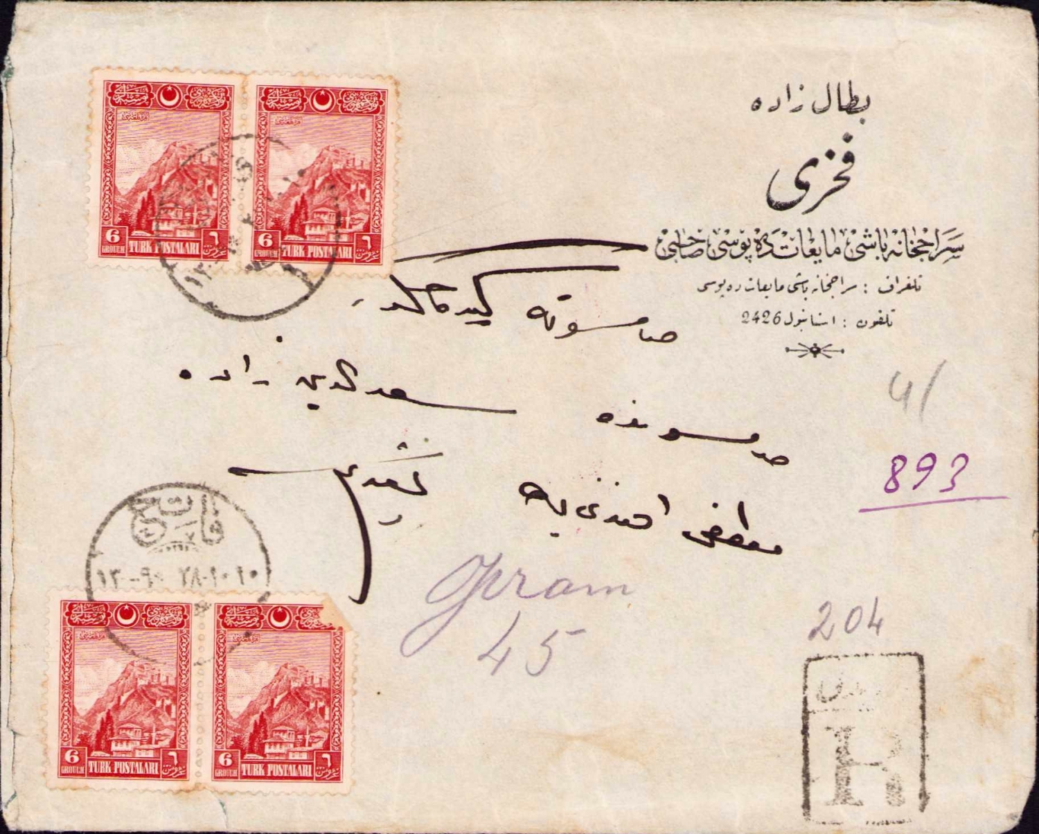 Battalzade Fahri Saraçhanebaşı Mayiat (rakı) Deposu antetli postadan geçmiş zarf