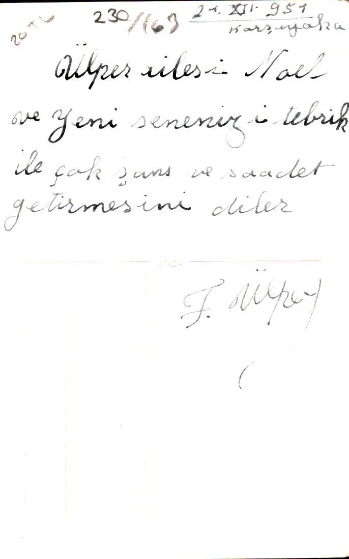 İzmir Saat Kulesi görselli, 1957 tarihli yeni yıl tebrik kartı