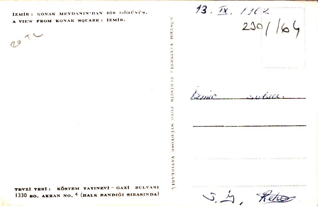 İzmir Konak Meydanı´ndan bir görünüm, 1962 tarihli